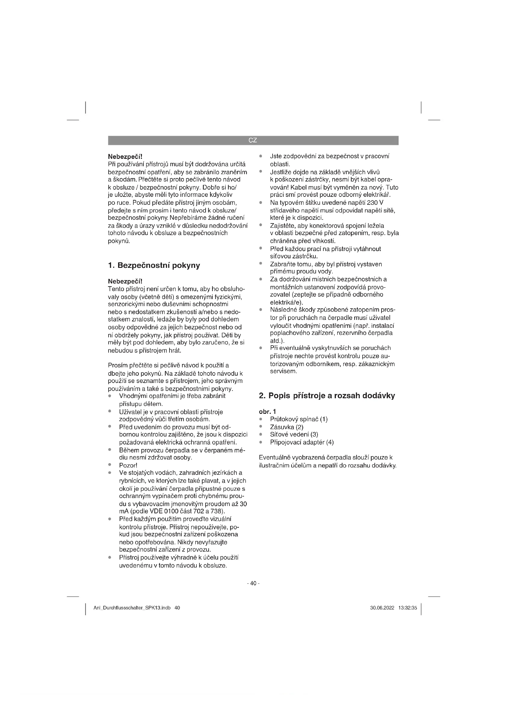 Připojovací adaptér (4) Eventuálně vyobrazená čerpadla slouží pouze k ilustračním účelům a nepatří do rozsahu dodávky. Anl_Durchflussschalter_SPK13.indb 40Anl_Durchflussschalter_SPK13.indb 40 30.06.2022 13:32:3530.06.2022 13:32:35CZ