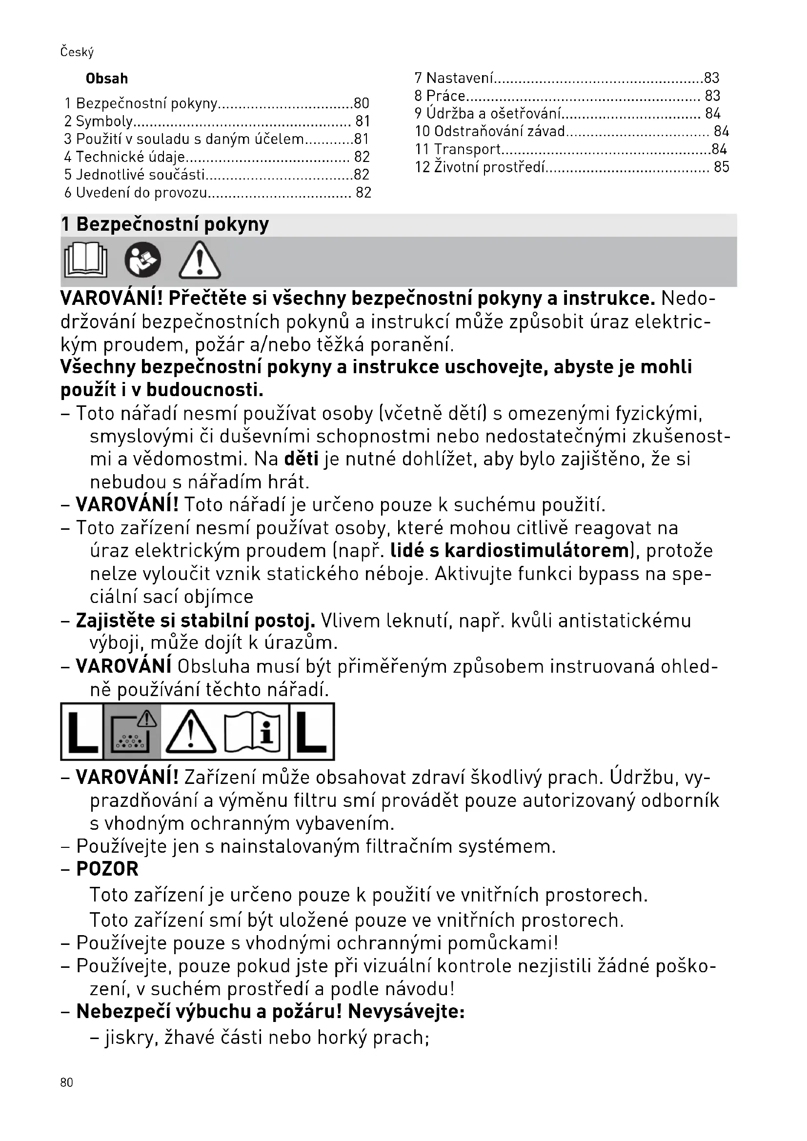 - 79Obsah 1 Bezpečnostní pokyny p. 80