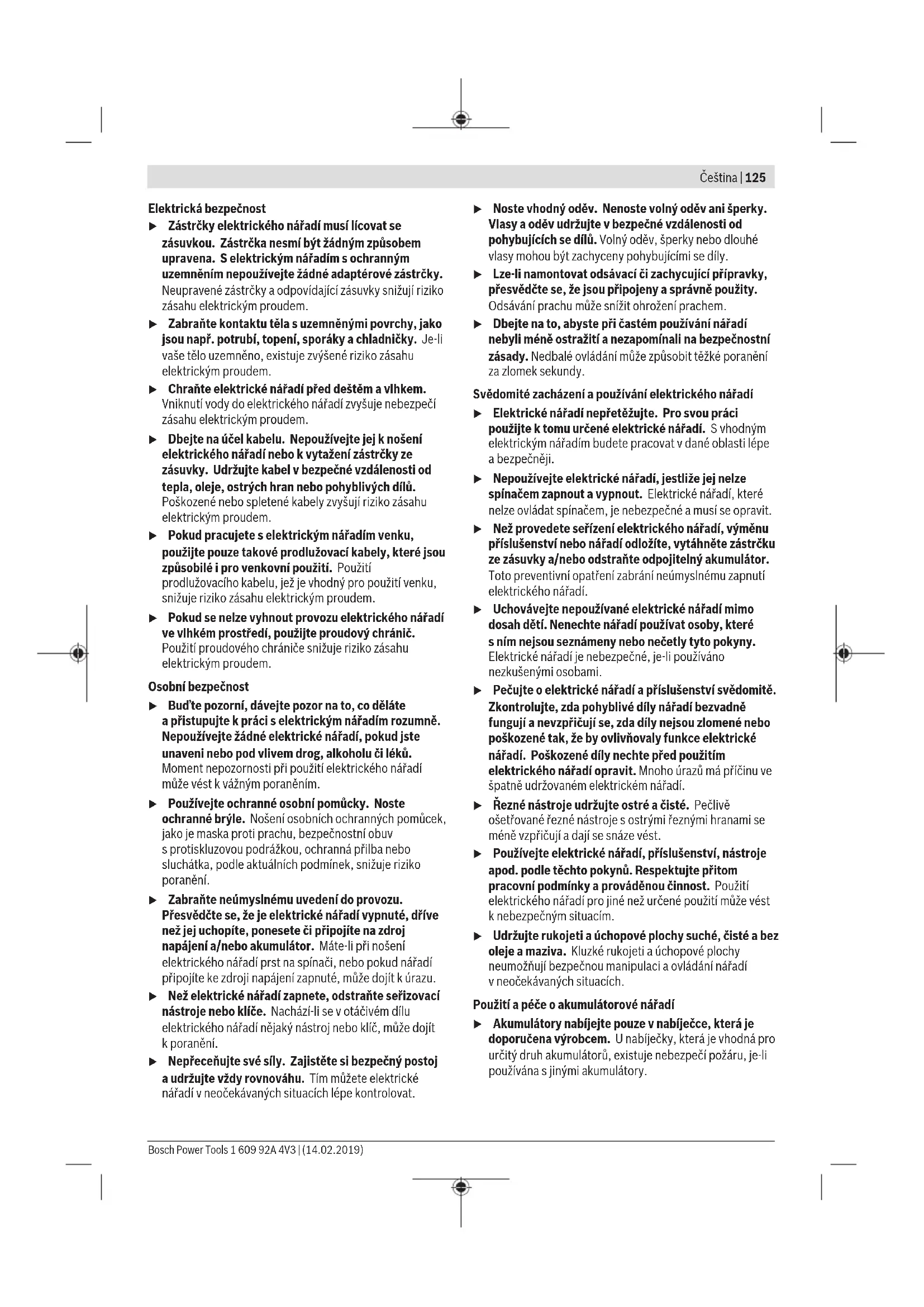 Úroveň vibrací aúroveň hluku, které jsou uvedené vtěchto pokynech, byly změřeny pomocí normované měřicí metody alze je použít pro vzájemné porovnání elektronářadí. Hodí se ipro předběžný odhad zatížení vibracemi ahlukem. Uvedená úroveň vibrací aúroveň hluku reprezentuje hlavní použití elektronářadí. Pokud se ovšem bude elektronářadí používat pro jiné práce, sjinými nástroji nebo snedostatečnou údržbou, může se úroveň hluku aúroveň vibrací lišit. To může zatížení vibracemi ahlukem po celou pracovní dobu zřetelně zvýšit. Pro přesný odhad zatížení vibracemi ahlukem by měly být zohledněny idoby, kdy je nářadí vypnuté nebo běží, ale ve skutečnosti se nepoužívá. To může zatížení vibracemi ahlukem po celou pracovní dobu výrazně snížit. Stanovte dodatečná bezpečnostní opatření kochraně obsluhy před účinky vibrací, jako je např. údržba elektronářadí anástrojů, udržování teplých rukou, organizace pracovních procesů. Montáž u Před každou prací na elektronářadí (např. údržba, výměna nástrojů) apři jeho přepravě auskladnění vyjměte akumulátor. Při neúmyslném stisknutí vypínače hrozí nebezpečí poranění. Obsah dodávky Typ 0 602 490 437/ 0 602 490 471/ 0 602 490 447/