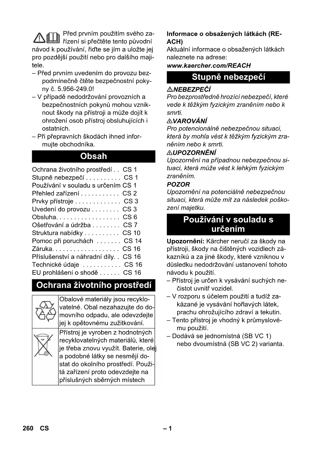NÁVOD K OBSLUZE SB VC 2 Kärcher