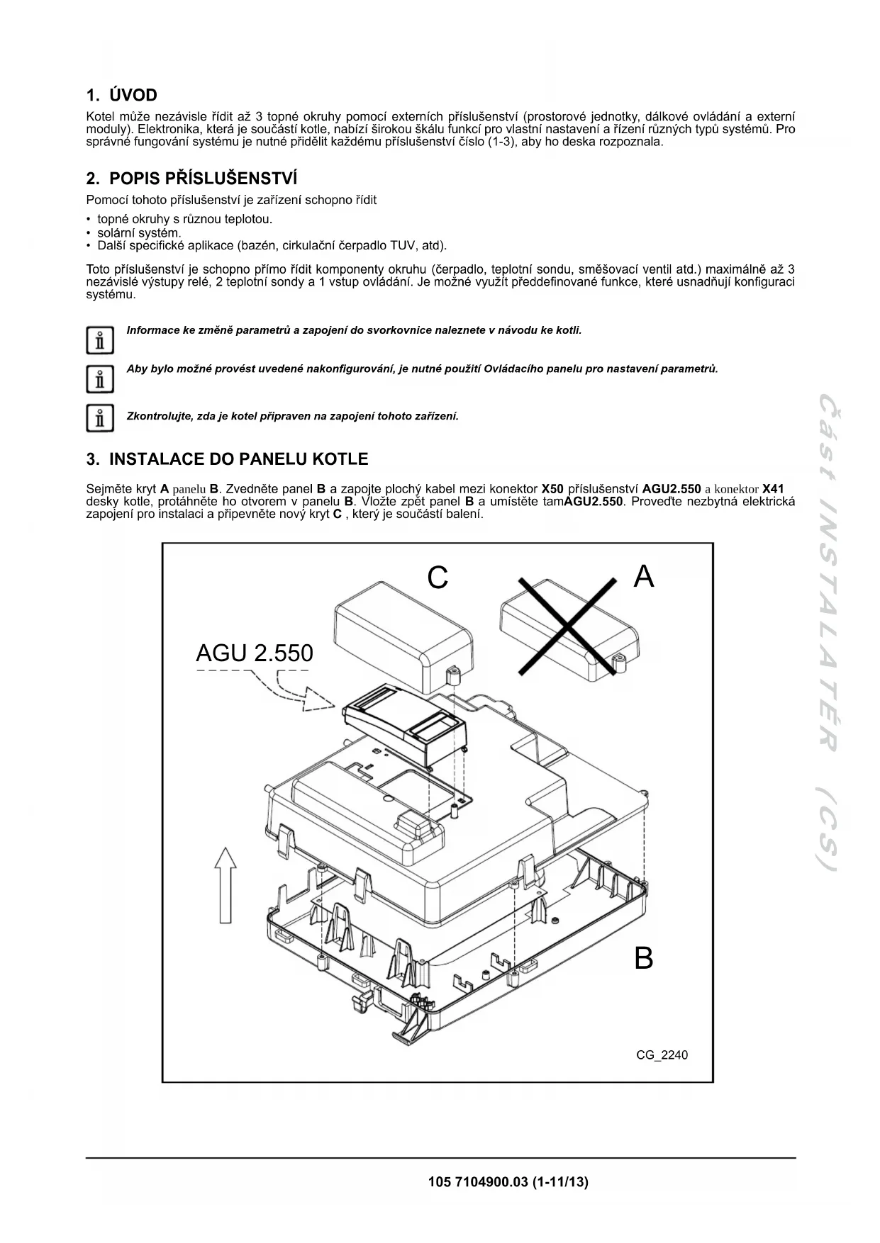Tyto informace je třeba důkladně pročíst, jsou nezbytné pro správný provoz kotle.105 7104900.03 (1-11/13) Část INSTALATÉR (CS)
