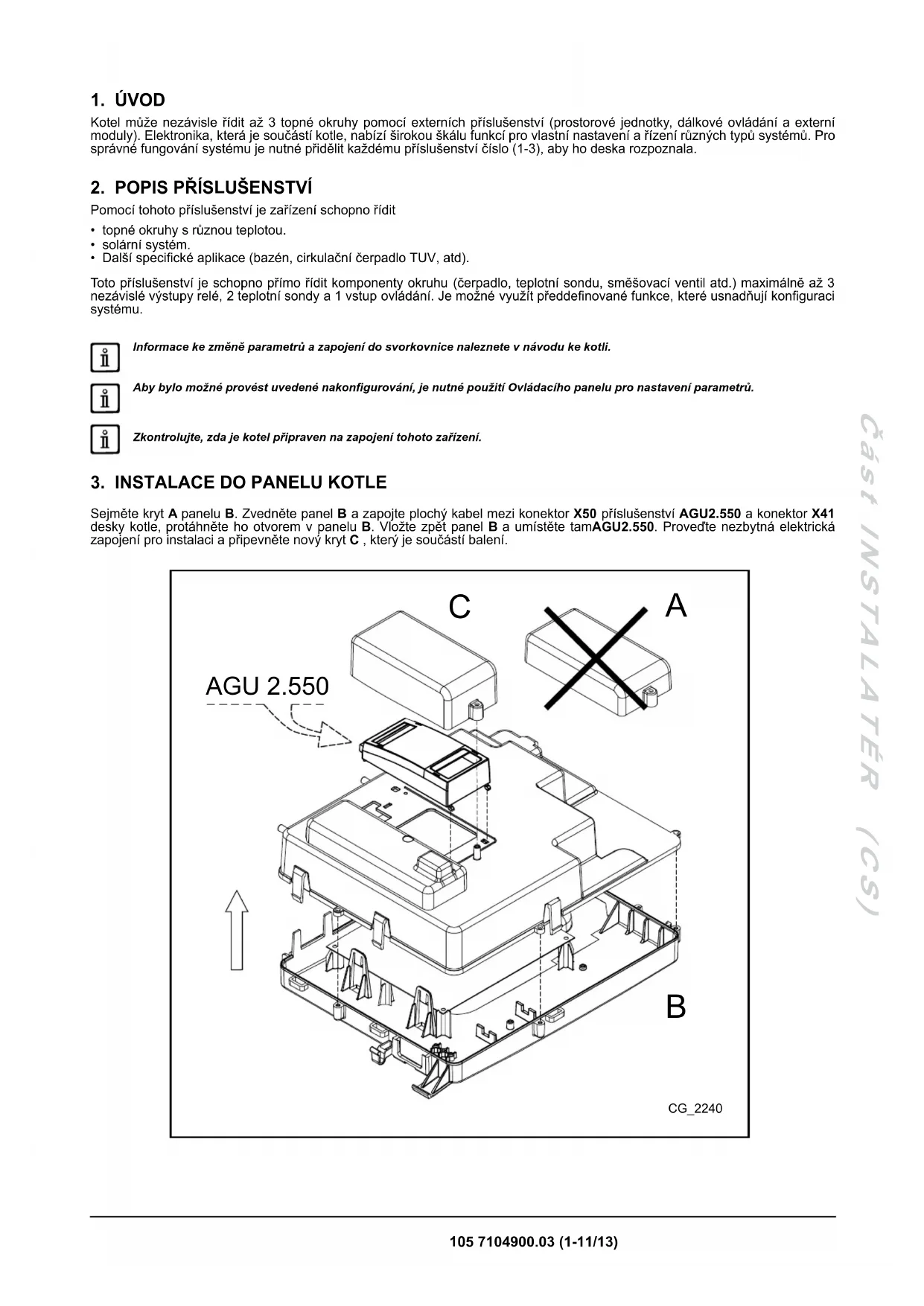 Tyto informace je třeba důkladně pročíst, jsou nezbytné pro správný provoz kotle.105 7104900.03 (1-11/13) Část INSTALATÉR (CS)