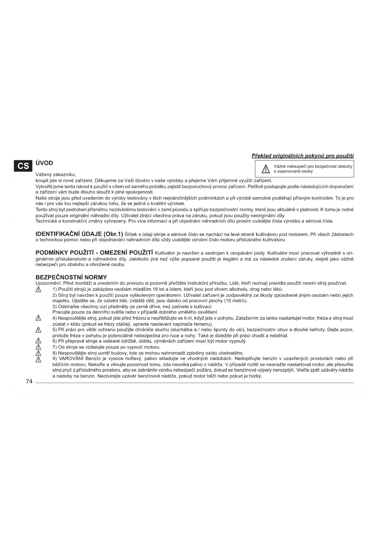 Vážné nebezpečí pro bezpečnost obsluhy a exponované osoby. Překlad originálních pokynů pro použití75
