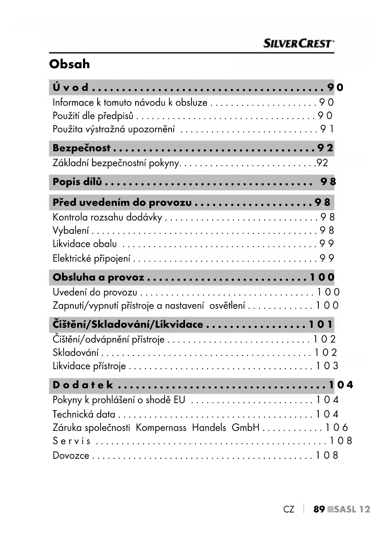 - Záruka společnosti Kompernass Handels GmbH p. 106
