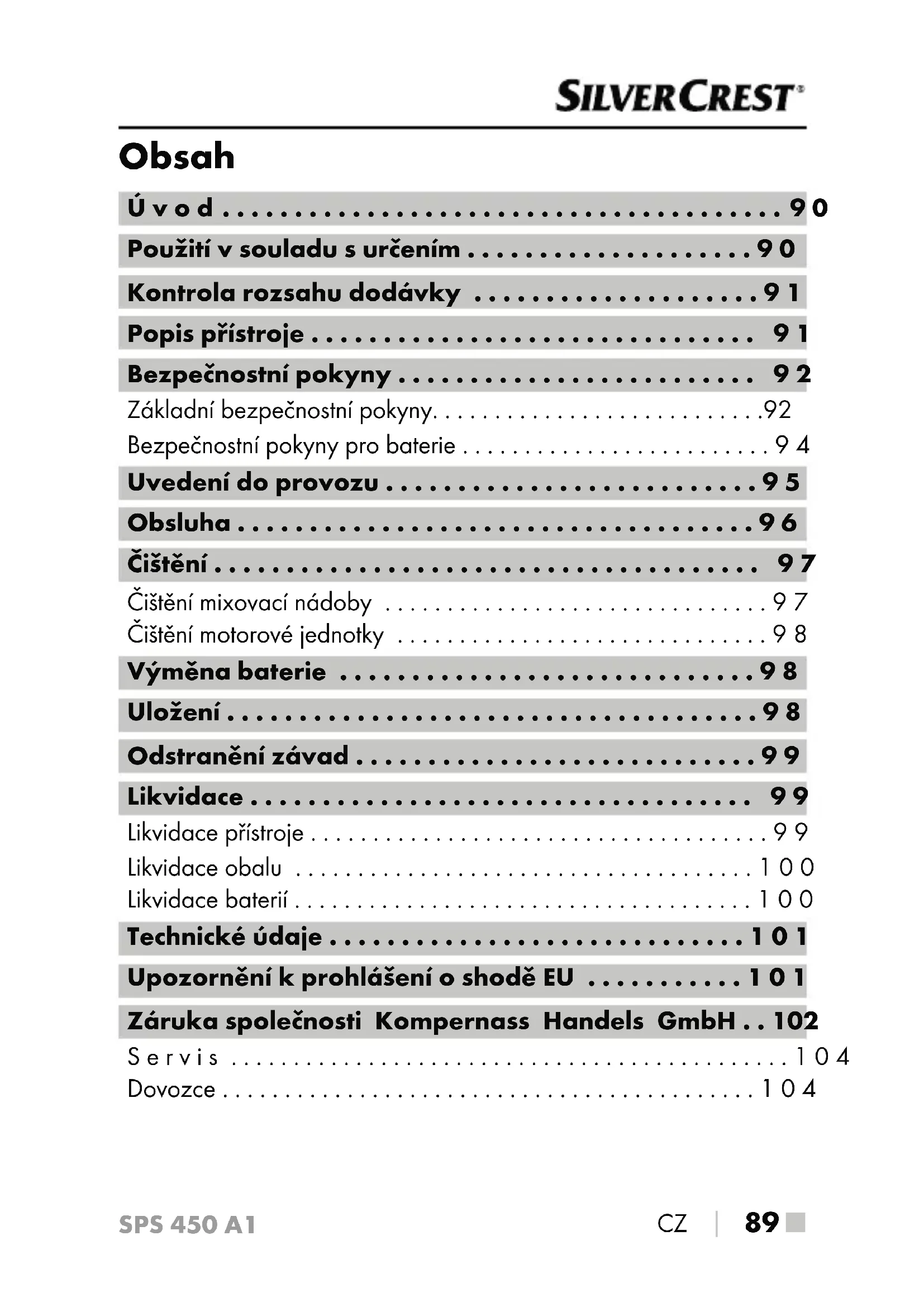 NÁVOD K OBSLUZE SPS 450 A1 SILVERCREST