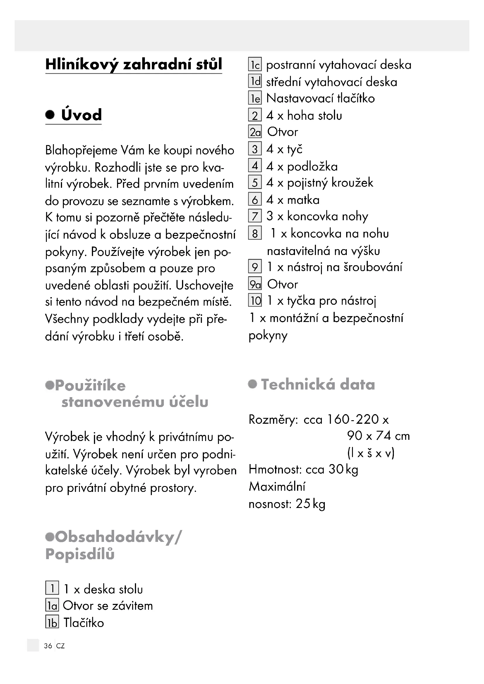 Technická data Strana 36