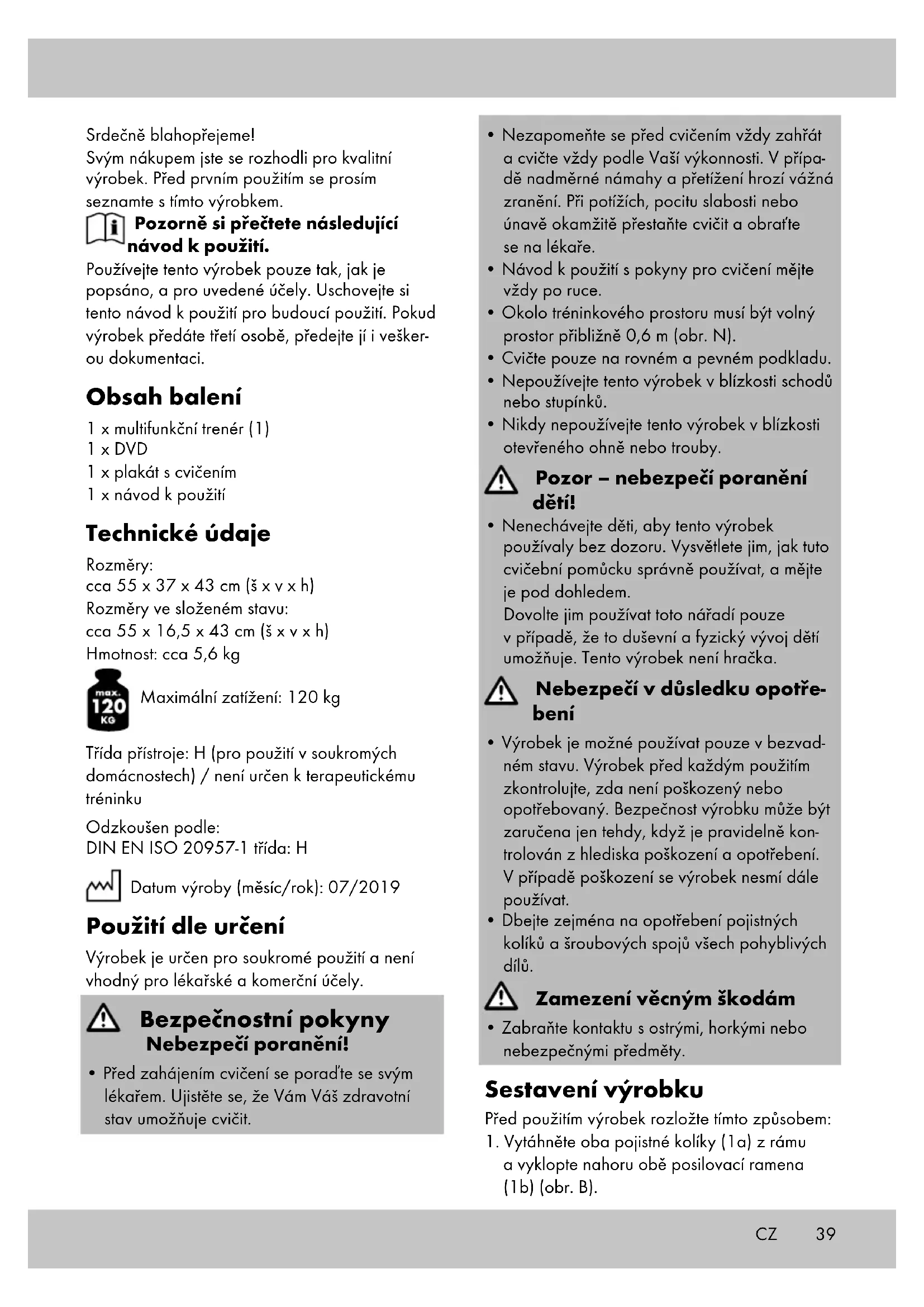 - Návod k použití s pokyny pro cviceni要去 vždy po ruce.