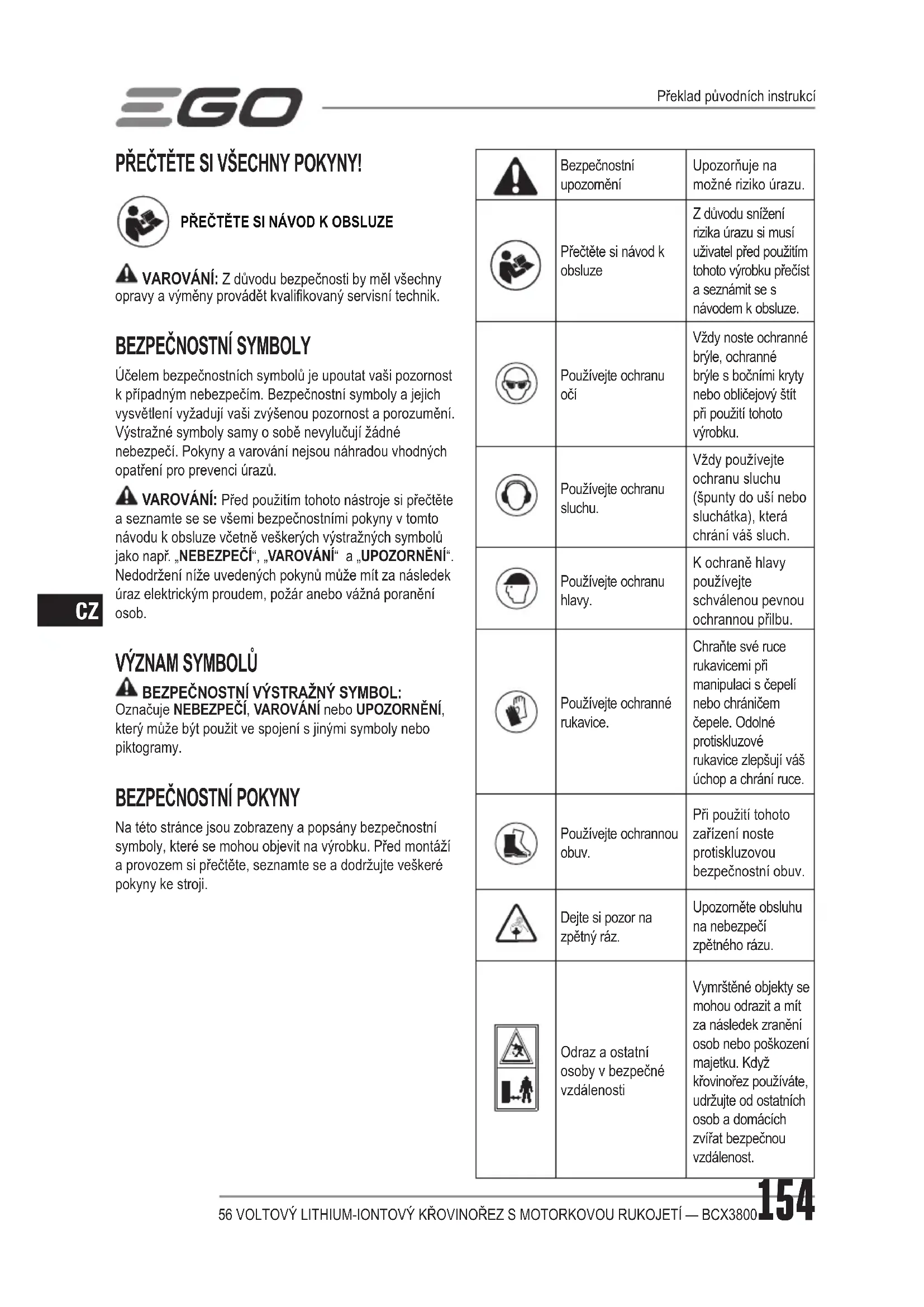 NÁVOD K OBSLUZE BCX3800E EGO