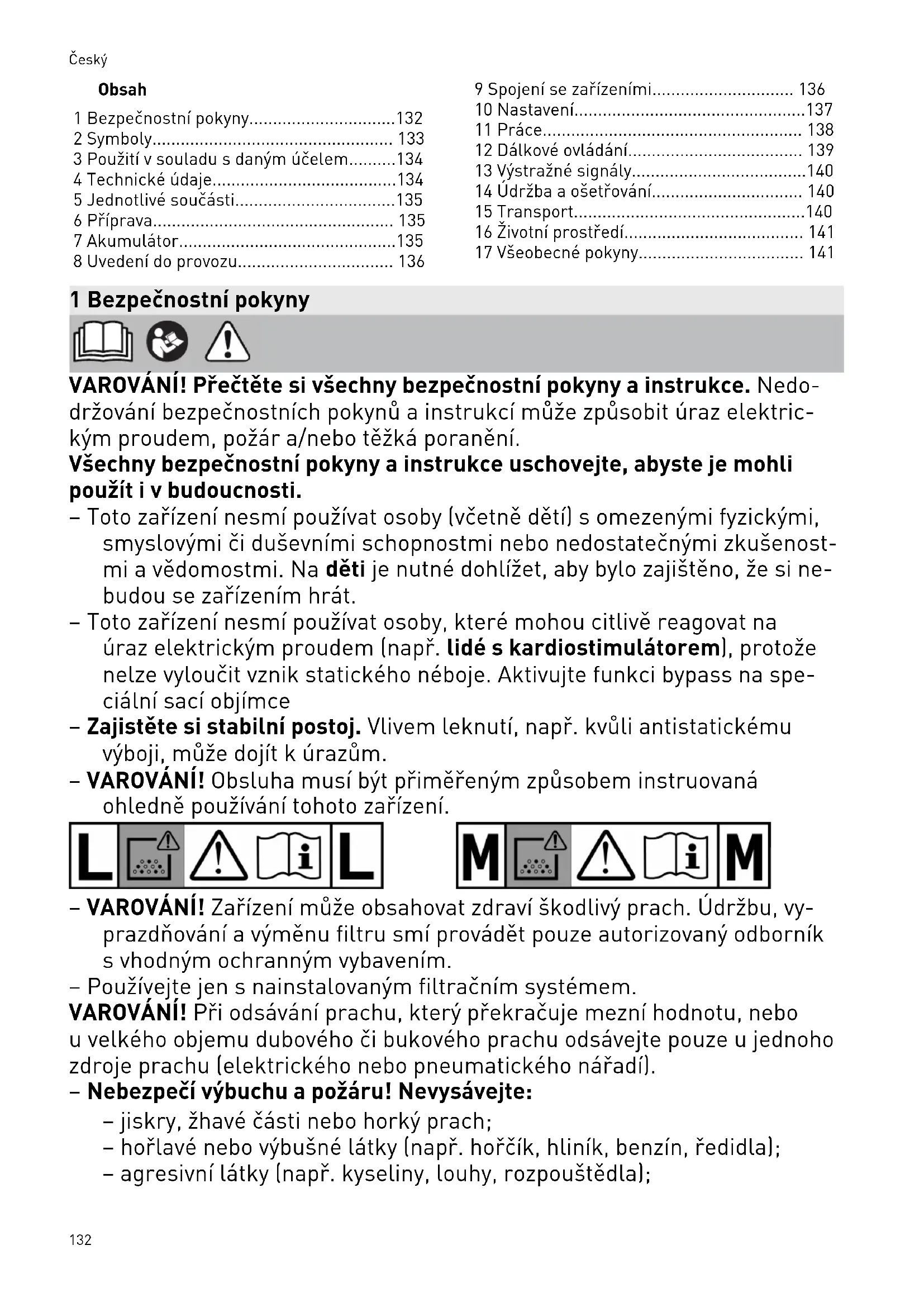 - 131Obsah 1 Bezpečnostní pokyny p. 132