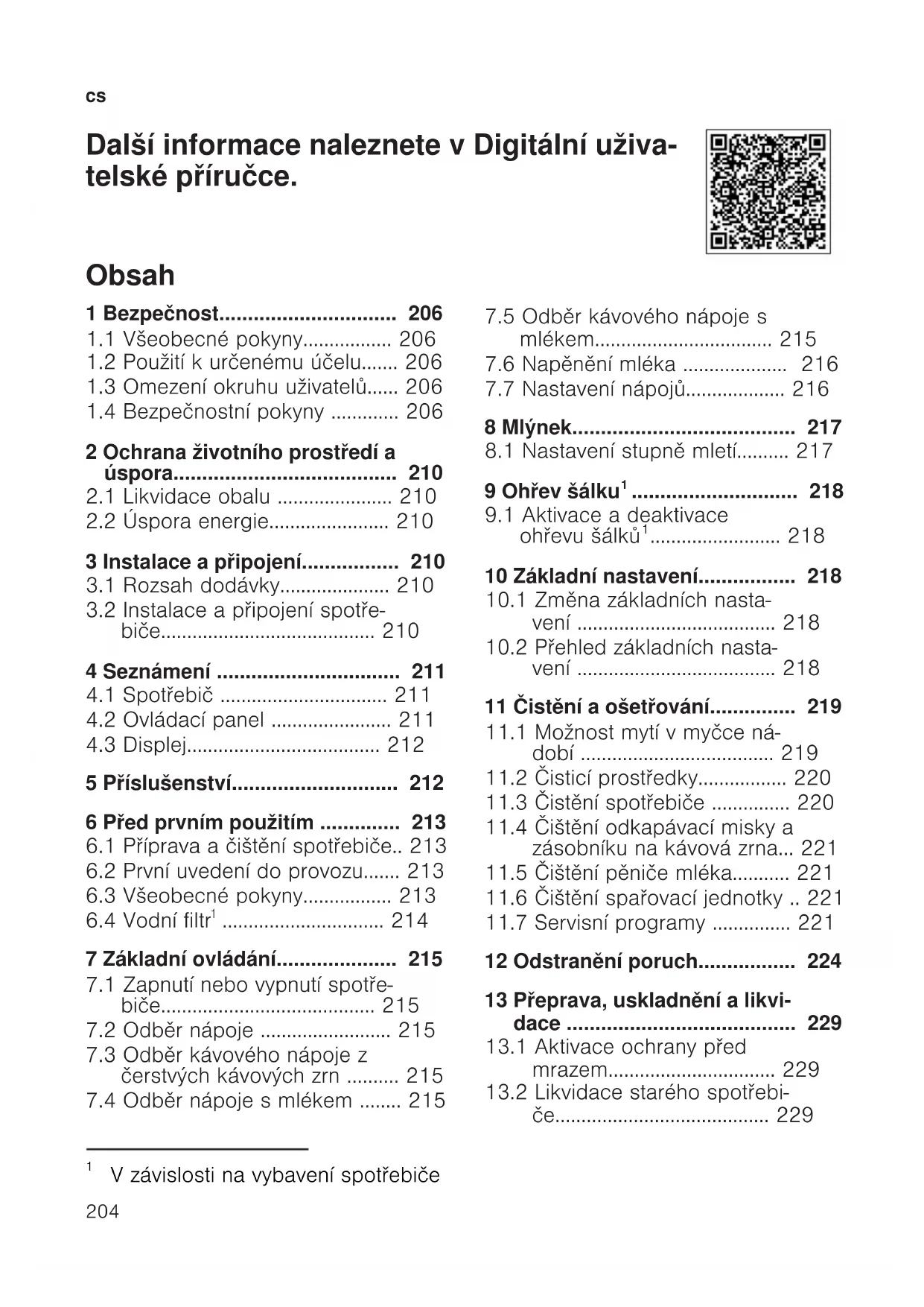 Další informace naleznete v Digitální uživa- telské příručce. Obsah 1 Bezpečnost...............................206