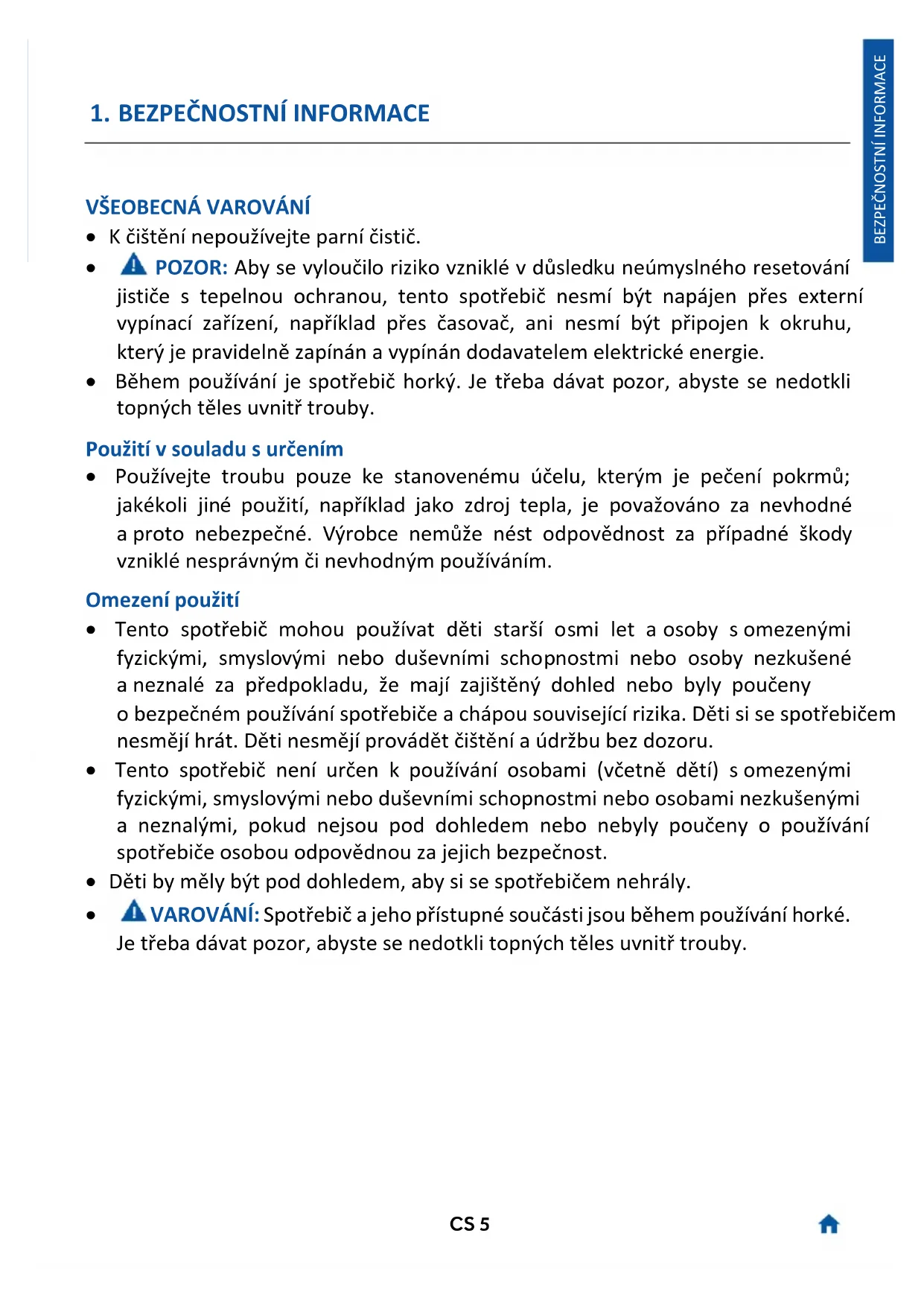 5. VAROVÁNÍ: Než se spotřebiče dotknete, přesvědčte se, že je studený. U všech žhavých povrchů