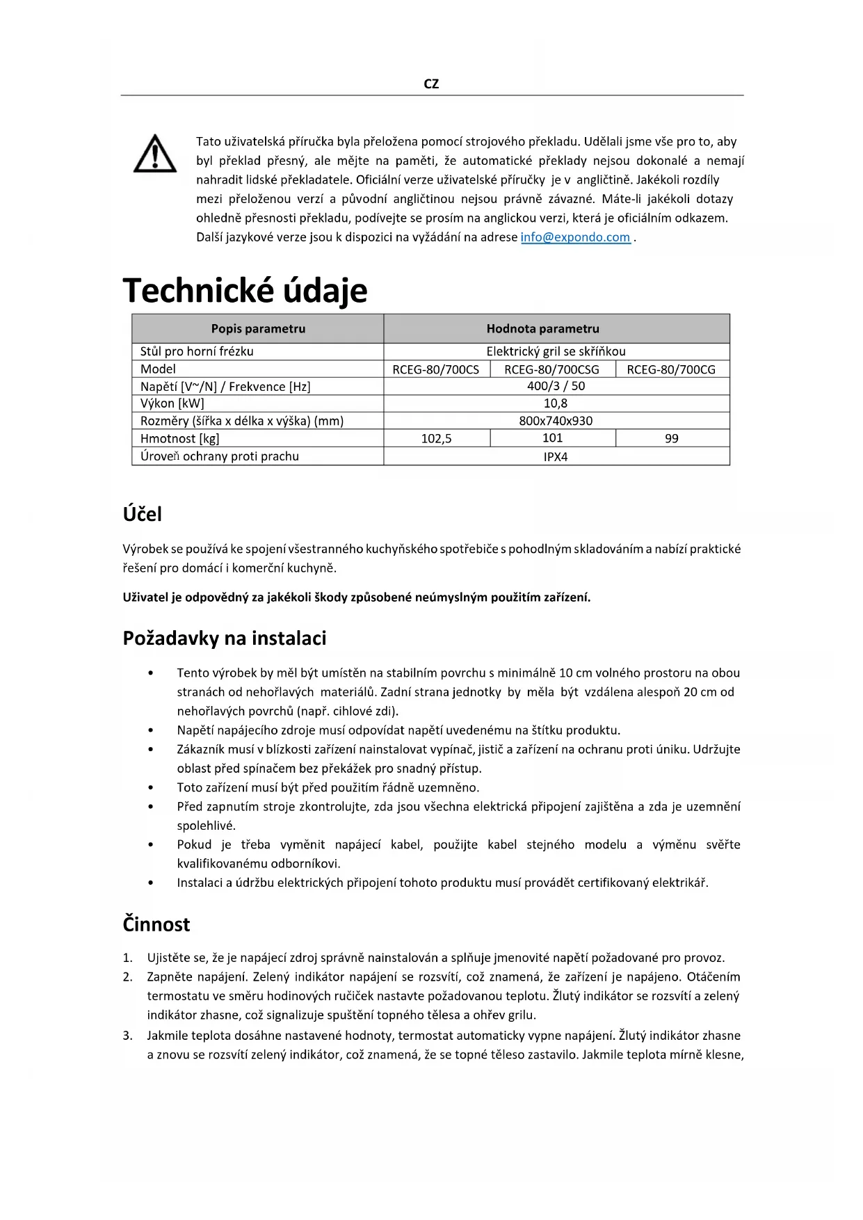 NÁVOD K OBSLUZE RCEG80700CSG Royal Catering