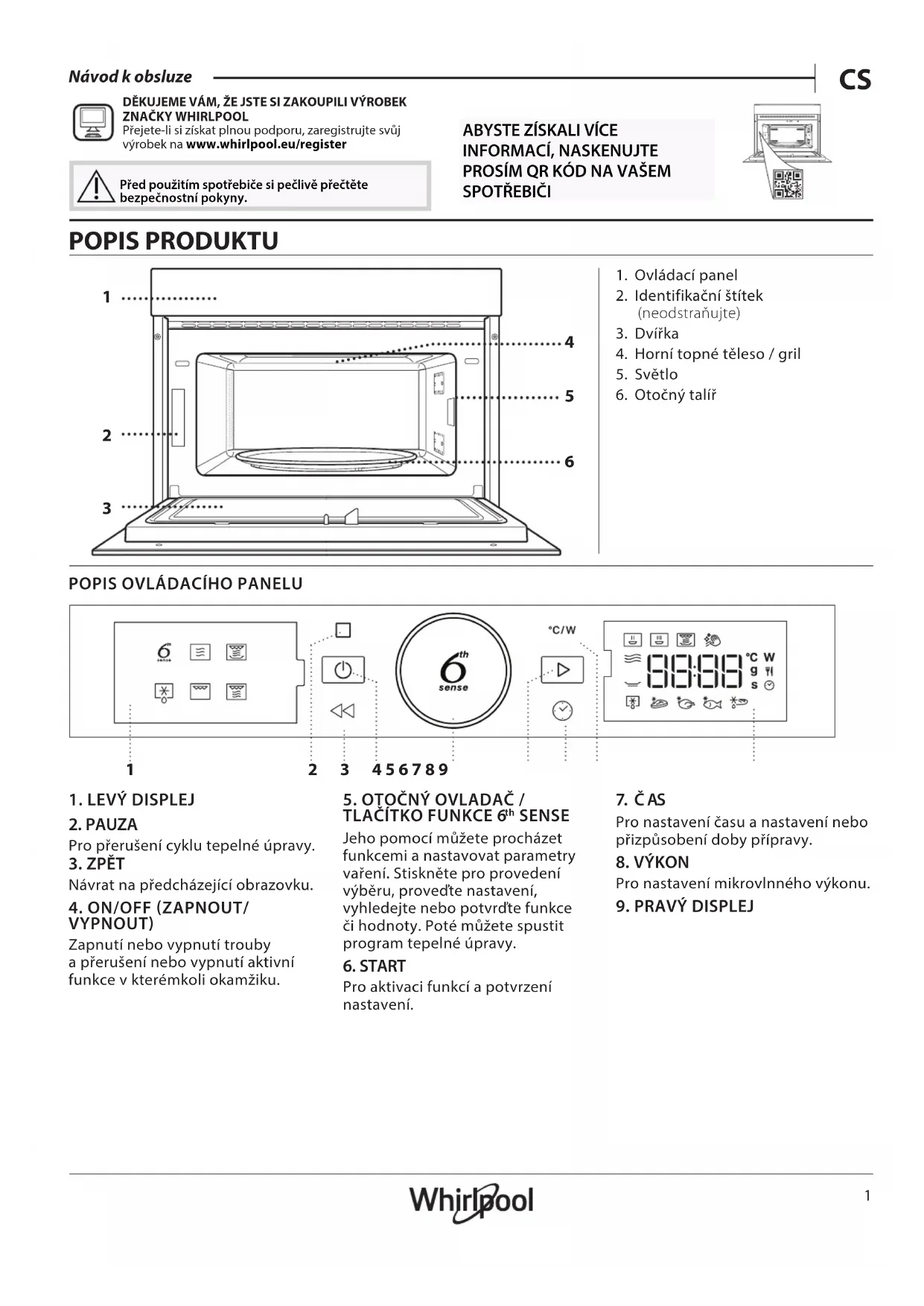 Přejete-li si získat plnou podporu, zaregistrujte svůj výrobek na www . whirlpool . eu/ register Před použitím spotřebiče si pečlivě přečtěte bezpečnostní pokyny.