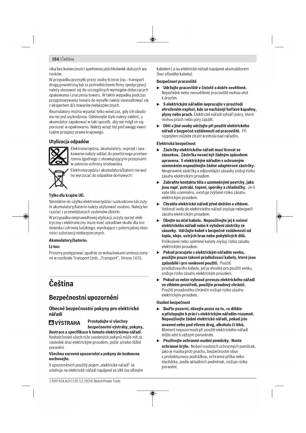mm 355 Tloušťka těla kotouče mm 1,8–2,5 Průměr otvoru d mm 25,4 A) Hmotnost bez akumulátoru (hmotnost akumulátoru viz http://www.bosch-professional.com) B) Omezený výkon při teplotách < 0 °C Hodnoty se mohou podle výrobku lišit amají na ně vliv podmínky použití aprostředí. Další informace najdete na www.bosch-professional.com/wac. Informace ohluku Hodnoty hlučnosti zjištěné podle ENIEC62841-1. Hladina hluku elektronářadí stanovená za použití váhového filtruA činí typicky: hladina akustického tlaku 91dB(A); hladina akustického výkonu 100dB(A). Nejistota K=3dB. Noste chrániče sluchu! Hodnota hluku, uvedená vtěchto pokynech, byla změřena pomocí normované měřicí metody alze ji použít pro vzájemné porovnání elektronářadí. Hodí se ipro předběžný odhad zatížení hlukem. Uvedená hodnota hlučnosti reprezentuje hlavní použití elektronářadí. Pokud se ovšem bude elektronářadí používat pro jiné práce, sjinými nástroji nebo snedostatečnou údržbou, může se úroveň hlučnosti lišit. To může zatížení hlukem po celou pracovní dobu zřetelně zvýšit. Pro přesný odhad zatížení hlukem by měly být zohledněny idoby, kdy je nářadí vypnuté nebo sice běží, ale fakticky se nepoužívá. To může zatížení hlukem po celou pracovní dobu výrazně snížit. Bosch Power Tools 1 609 92A A2V | (20.12.2024)170 | Čeština Akumulátor Bosch prodává akumulátorové elektrické nářadí ibez akumulátoru. Na obale je uvedené, zda je součástí dodávky elektrického nářadí akumulátor. Nabíjení akumulátoru u Používejte pouze nabíječky uvedené vtechnických údajích. Jen tyto nabíječky jsou přizpůsobené pro lithium-iontový akumulátor používaný svaším elektronářadím. Upozornění: Lithium-iontové akumulátory se na základě mezinárodních dopravních předpisů dodávají částečně nabité. Aby byl zaručen plný výkon akumulátoru, před prvním použitím akumulátor úplně nabijte. Nasazení akumulátoru Vložte nabitý akumulátor do uchycení akumulátoru tak, aby citelně zaskočil. Vyjmutí akumulátoru Pro vyjmutí akumulátoru stiskněte odjišťovací tlačítko avytáhněte akumulátor. Nepoužívejte přitom násilí. Akumulátorje opatřený 2stupni zajištění, které mají zabránit vypadnutí akumulátoru při neúmyslném stisknutí odjišťovacího tlačítka. Pokud je akumulátor nasazený do elektrického nářadí, drží ho vpříslušné poloze pružina. Ukazatel stavu nabití akumulátoru Upozornění: Ne každý typ akumulátoru má ukazatel stavu nabití. Zelené LED ukazatele stavu nabití akumulátoru indikují stav nabití akumulátoru. Zbezpečnostních důvodů je zjištění stavu nabití možné pouze při vypnutém elektronářadí. Pro zobrazení stavu nabití stiskněte tlačítko ukazatele stavu nabití nebo . Je to možné také při vyjmutém akumulátoru. Pokud po stisknutí tlačítka ukazatele stavu nabití nesvítí žádná LED, je akumulátor vadný amusí se vyměnit. Typ akumulátoru GBA 18V... LED Kapacita Trvale svítí 3 zelené 60–100% Trvale svítí 2 zelené 30–60% Trvale svítí 1 zelená 5–30% Bliká 1 zelená 0–5% Typ akumulátoru ProCORE18V... LED Kapacita Trvale svítí 5 zelených 80–100% LED Kapacita Trvale svítí 4 zelené 60–80% Trvale svítí 3 zelené 40–60% Trvale svítí 2 zelené 20–40% Trvale svítí 1 zelená 5–20% Bliká 1 zelená 0–5% Upozornění pro optimální zacházení s akumulátorem Akumulátor chraňte před vlhkostí a vodou. Akumulátor skladujte pouze v teplotním rozmezí od −20 °C do 50 °C. Nenechávejte akumulátor ležet např. v létě v autě. Příležitostně vyčistěte větrací otvory akumulátoru měkkým, čistým a suchým štětcem. Výrazně kratší doba chodu po nabití ukazuje, že je akumulátor opotřebovaný a musí se vyměnit. Dodržujte pokyny pro likvidaci. Montáž u Před každou prací na elektrickém nářadí (např. údržba, výměna nástroje atd.) zněj vyjměte akumulátor. Při neúmyslném stisknutí vypínače hrozí nebezpečí poranění. Obsah dodávky – Vyjměte všechny dodané díly opatrně zobalu. – Odstraňte veškerý balicí materiál zelektrického nářadí azdodaného příslušenství. Před prvním uvedením elektronářadí do provozu zkontrolujte, zda jste obdrželi všechny níže uvedené díly: – Akumulátorová pila na řezání kovů snamontovaným pilovým kotoučem – Klíč na vnitřní šestihran (11) – Trubková čelist (20) Upozornění: Zkontrolujte elektronářadí, zda případně není poškozené. Před dalším použitím elektronářadí musíte pečlivě zkontrolovat bezvadnou asprávnou funkci ochranných zařízení nebo lehce poškozených dílů. Zkontrolujte, zda pohyblivé díly bezvadně fungují aneváznou či zda díly nejsou poškozené. Veškeré díly musí být správně namontovány amusí splňovat všechny podmínky, aby byl zaručen bezvadný provoz. Poškozené ochranné prostředky adíly musíte nechat opravit nebo vyměnit vautorizovaném servisu. Stacionární nebo flexibilní montáž u Kzaručení bezpečné manipulace musíte elektrické nářadí před použitím namontovat na rovnou astabilní pracovní plochu (např. pracovní stůl). Montáž na pracovní plochu (viz obrázek A) – Upevněte elektronářadí pomocí vhodného šroubového spoje na pracovní plochu. Ktomu slouží otvory (12). 1 609 92A A2V | (20.12.2024) Bosch Power ToolsČeština | 171 Montáž na pracovní stůl Bosch Pracovní stoly GTA od firmy Bosch poskytují pro elektrické nářadí oporu na každém podkladu díky výškově nastavitelným nohám. Podpěry obrobku pracovních stolů slouží kpodepření dlouhých obrobků. u Čtěte všechna kpracovnímu stolu přiložená varovná upozornění apokyny. Zanedbání při dodržování varovných upozornění apokynů moho