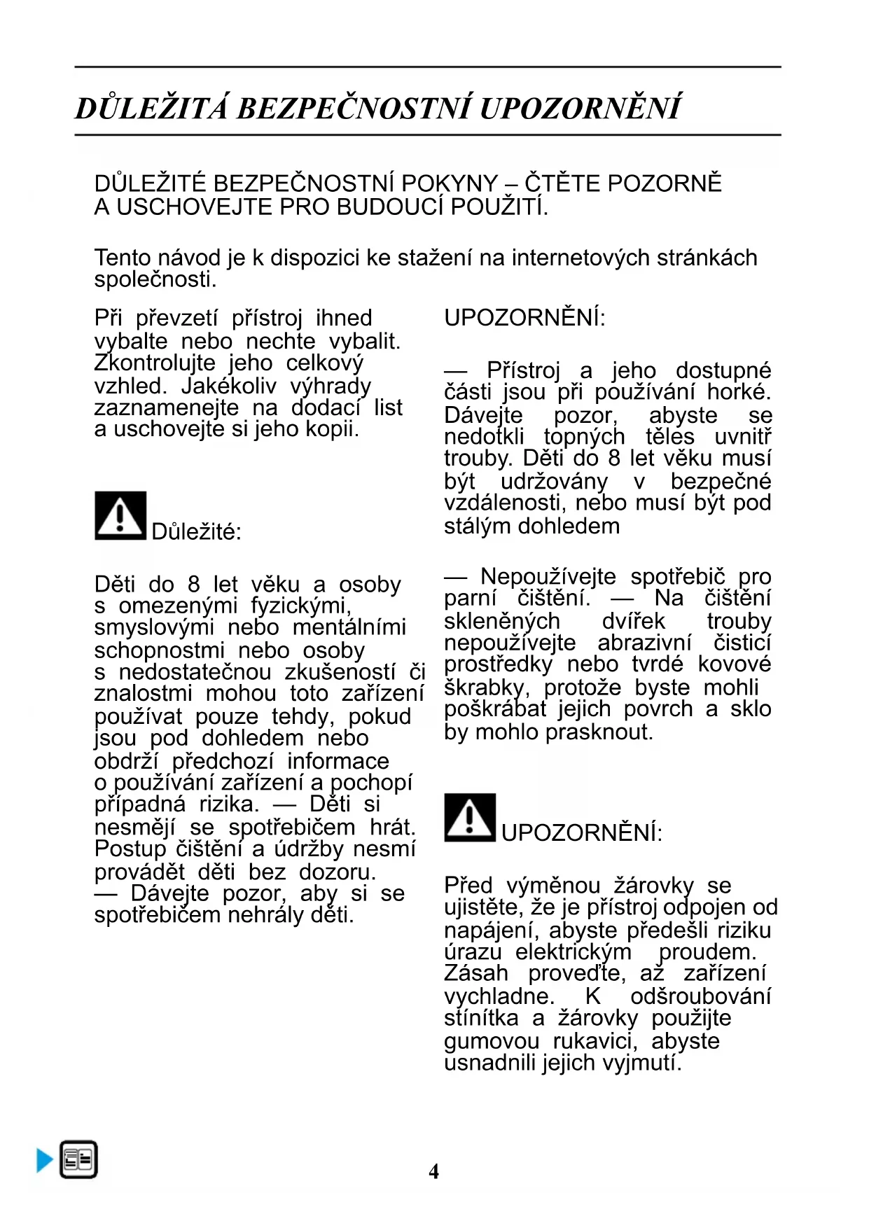 DULEZITÉ BEZPEČNOSTNI POKNY - CTETE POZORNE A USCHOVEJTE PRO BUDOUCIPOUŽITÍ.