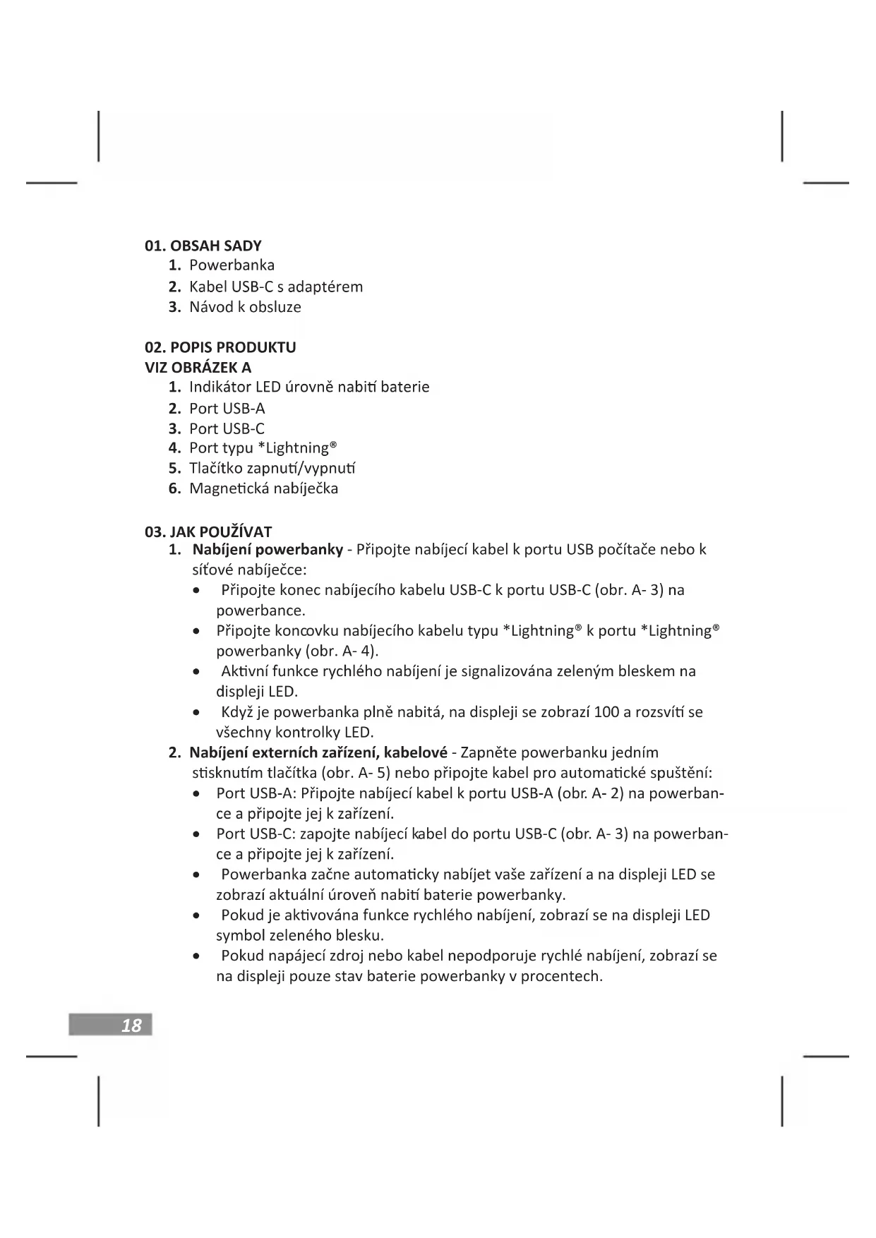 - Csatlakoztassa a töltőkábel *Lightning® pusú végét a powerbank *Light- ning® portjához (A- 4. ábra). Specikace a obsah soupravy se mohou změnit bez předchozího upozornění, omlo- uváme se za případné nepříjemnos. *Lightning® je registrovaná ochranná známka společnos Apple Inc.23