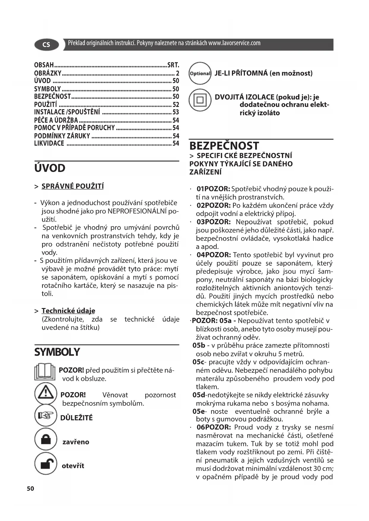 POZOR! Venovat pozornost bezpečnosním symbolism.