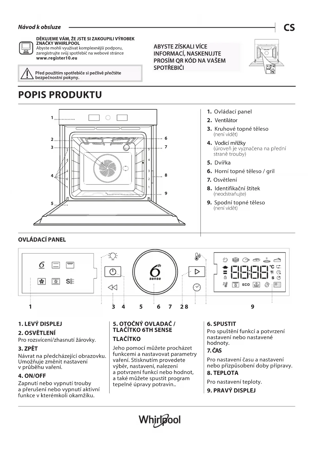Abyste mohli využívat komplexnější podporu, zaregistrujte svůj spotřebič na webové stránce www.register10.eu Před použitím spotřebiče si pečlivě přečtěte bezpečnostní pokyny. POPIS PRODUKTU