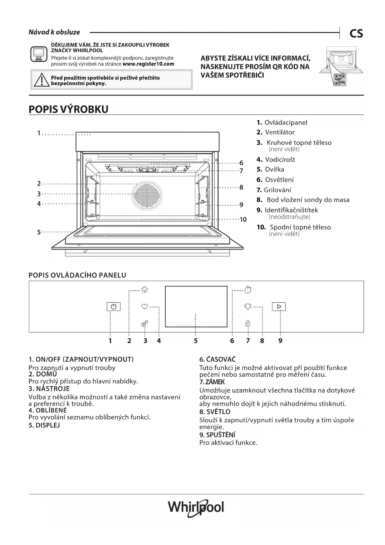 WCW9O7PHTSB - Trouba WHIRLPOOL - Bezplatný návod k obsluze