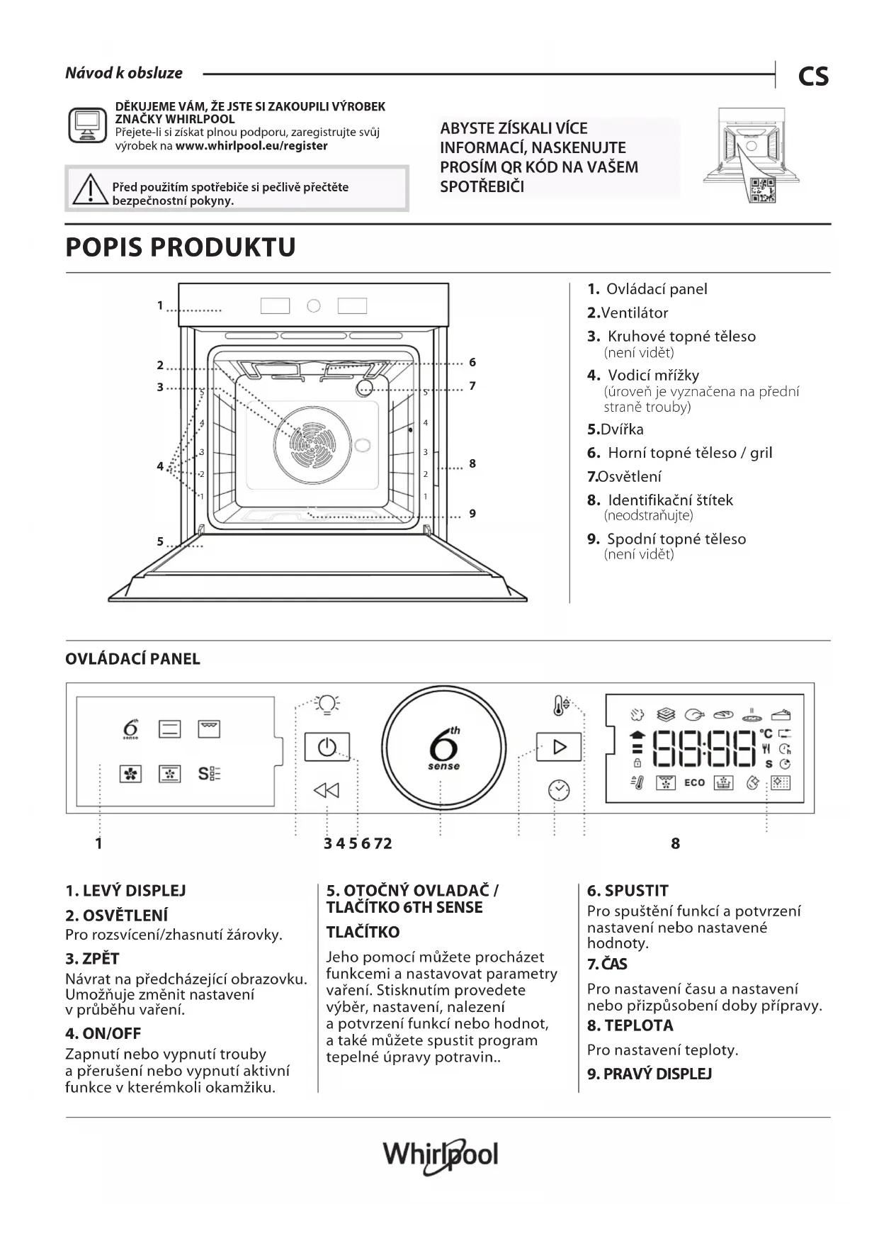 Přejete-li si získat plnou podporu, zaregistrujte svůj výrobek na www . whirlpool . eu/ register Před použitím spotřebiče si pečlivě přečtěte bezpečnostní pokyny. POPIS PRODUKTU