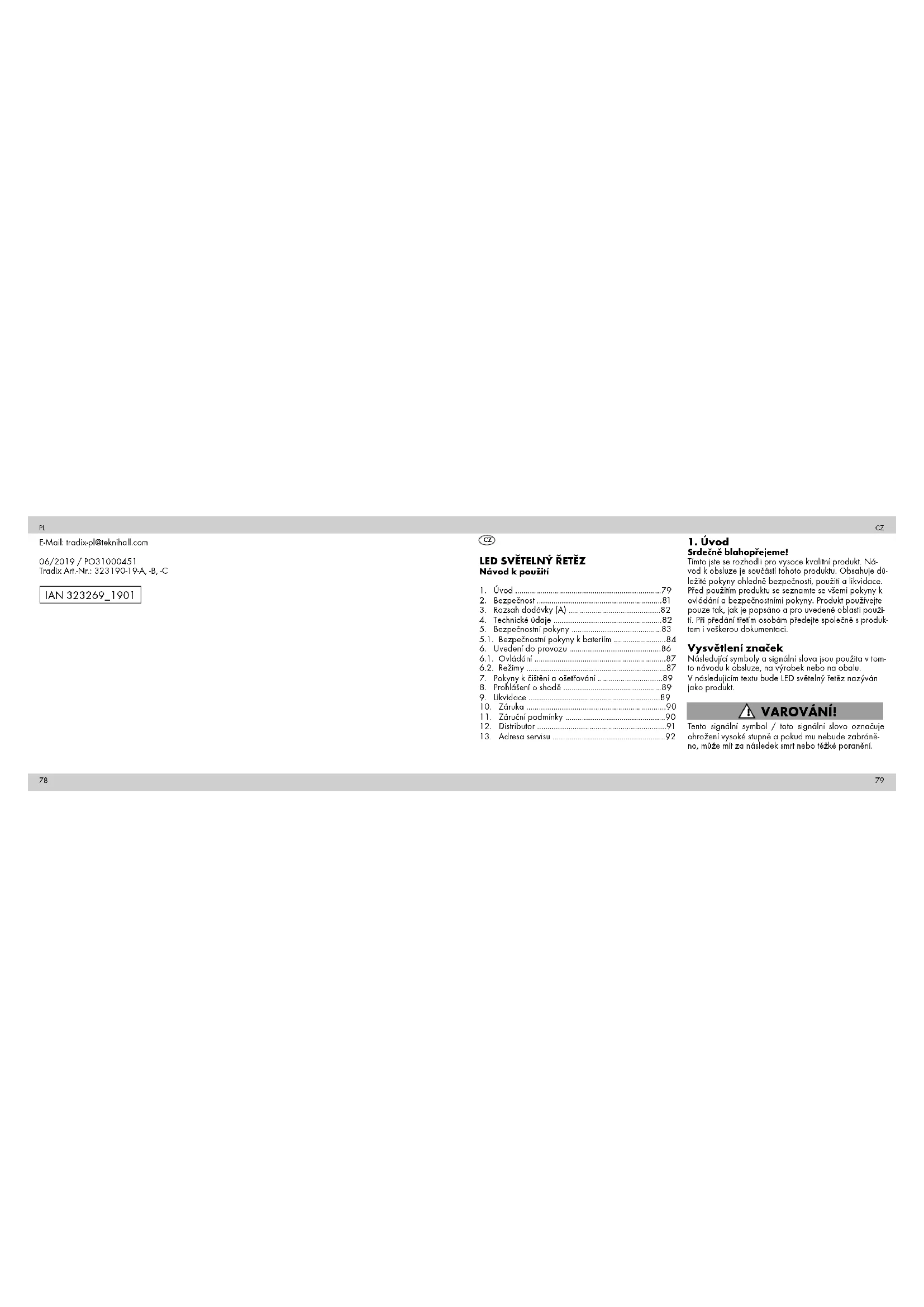 Použití v souladu s určením Tento produkt je určen k použití v interiéru a ex- teriéru. Tento produkt slouží výlučně k dekorativním účelům, není vhodný pro osvětlení místností v domácnosti. CZ CZ82