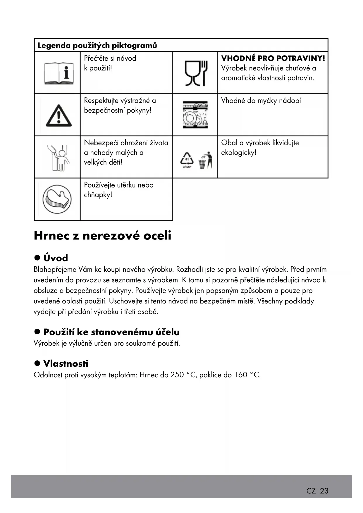 POUZIVEJTE OCHRANNE RUKAVICE! Vyrobek se během vařeni zahriva na ysvokou teplotu. Použijte proto ke své ochraně chnapky nebo rukavice.