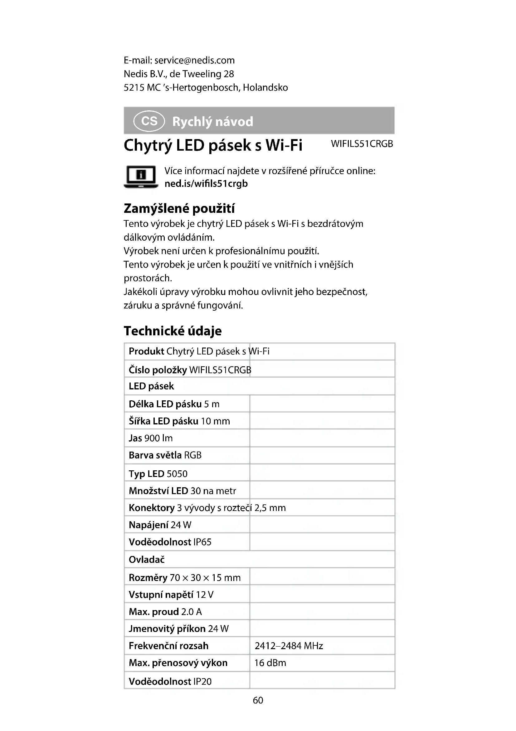 Najděte návod k zařízení zdarma WIFILS51CRGB NEDIS ve formátu PDF.