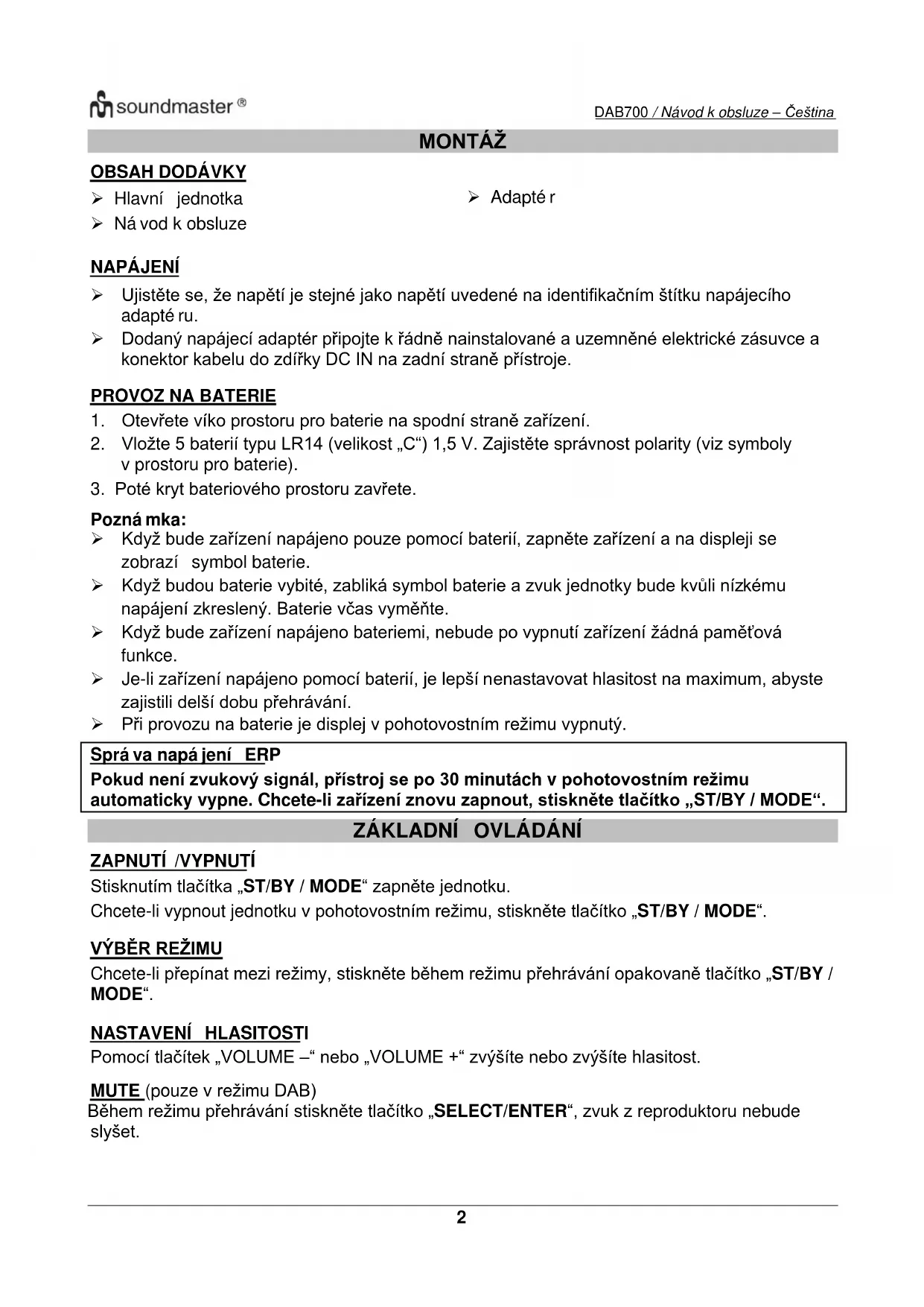 NÁVOD K OBSLUZE DAB700 Soundmaster
