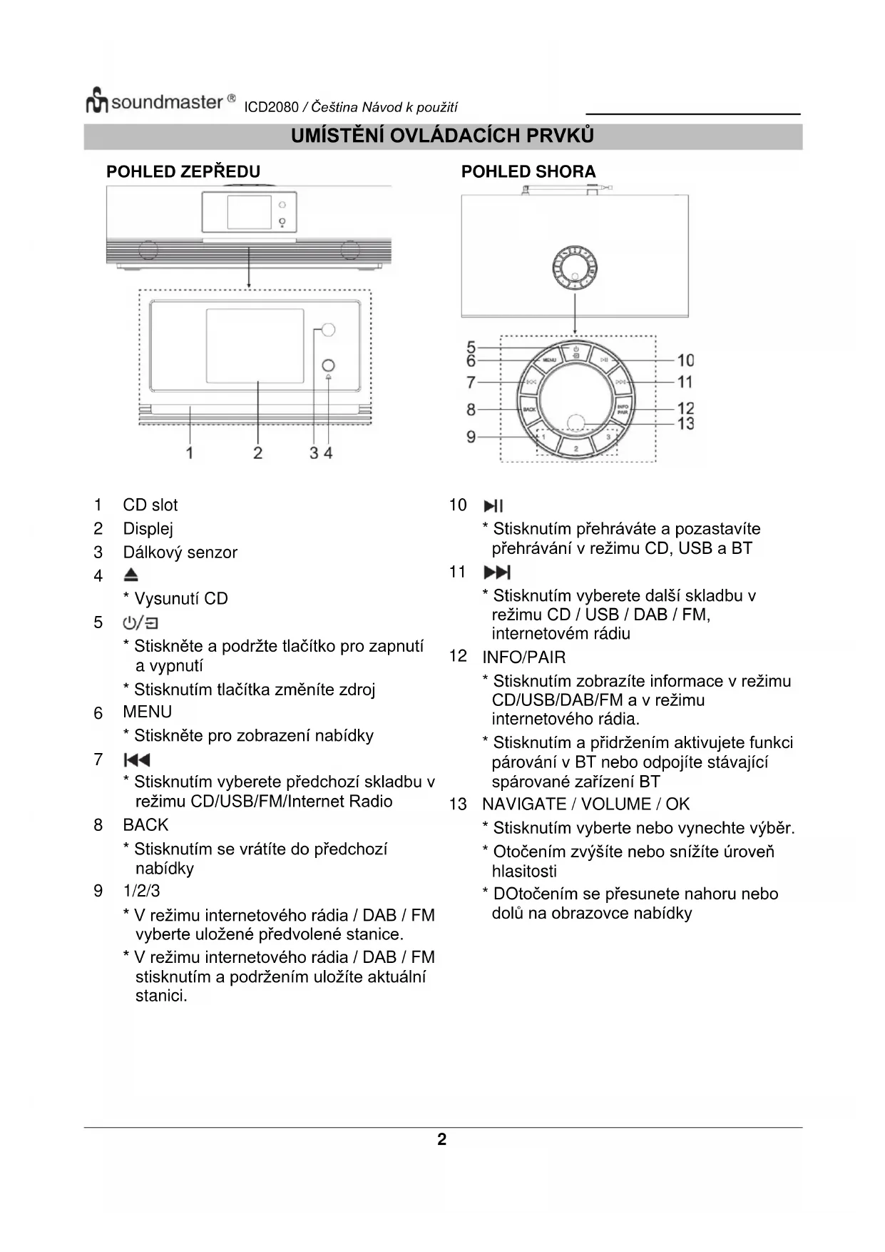 NÁVOD K OBSLUZE ICD2080 Soundmaster
