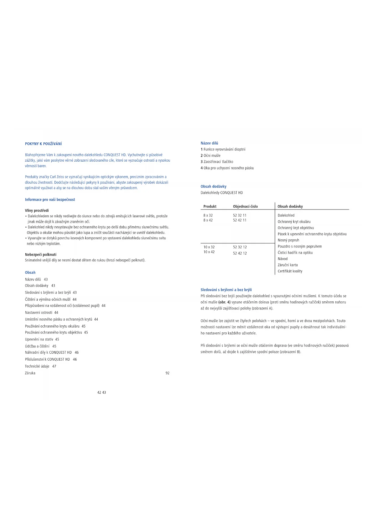 Produktznačky Carl Zeiss se vyznacuji vynikajcim optickým vykonem, preciznim zpracovámam dlouhou zivotnosti. Dodržujte nasledujici používani, abyste zakopený vyrobek dokazali optimné vyuzivat a aby se na dlouhou dobu stal vašim věrném privovdćem.