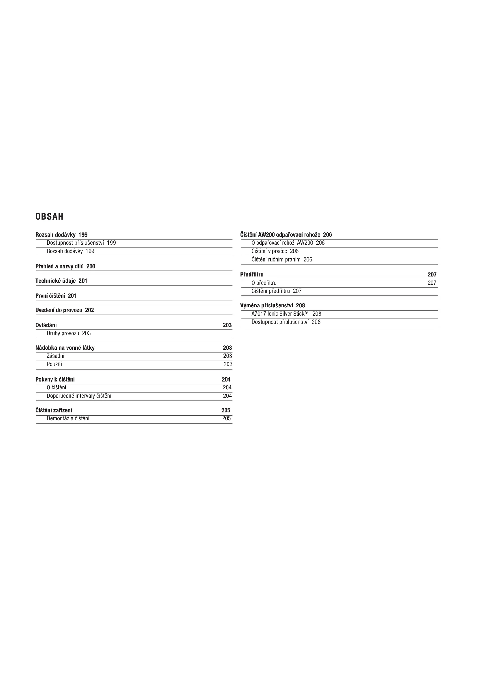 AW200 odpaovaci rohoIze cistit v pracce. Jako prisadu pouzivejte bezny praci prostredek.