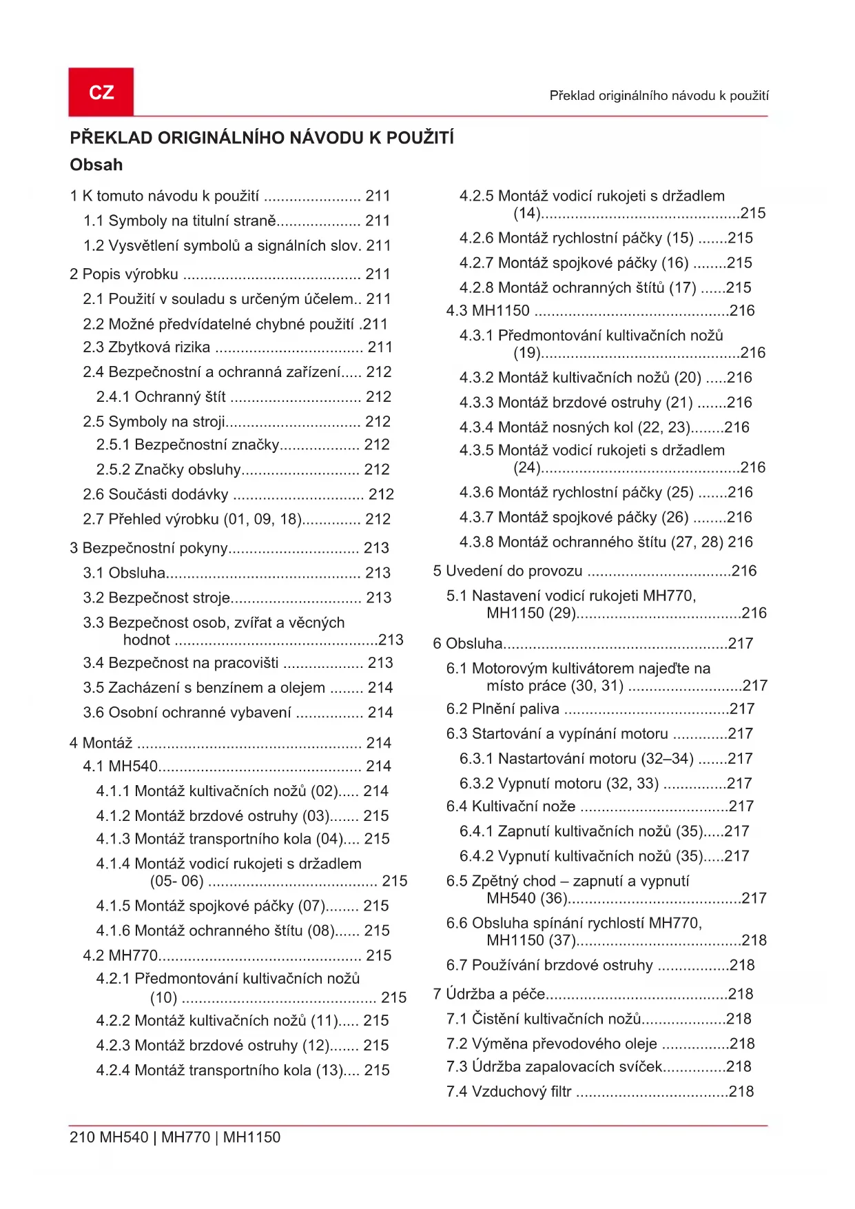 (35)", strana217.CZ 218 MH540 | MH770 | MH1150 Údržba a péče