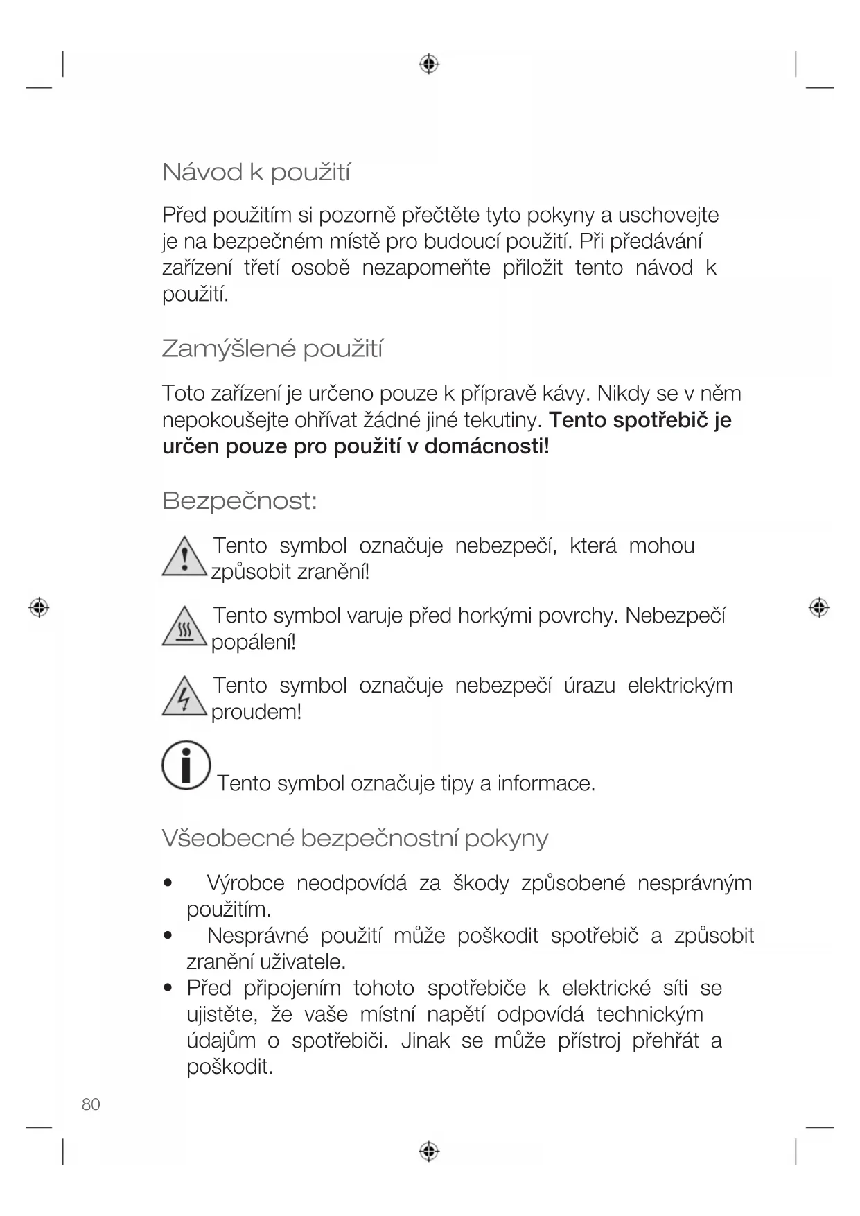 - Váš kávovar je určen pouze pro přípravu kávy.
