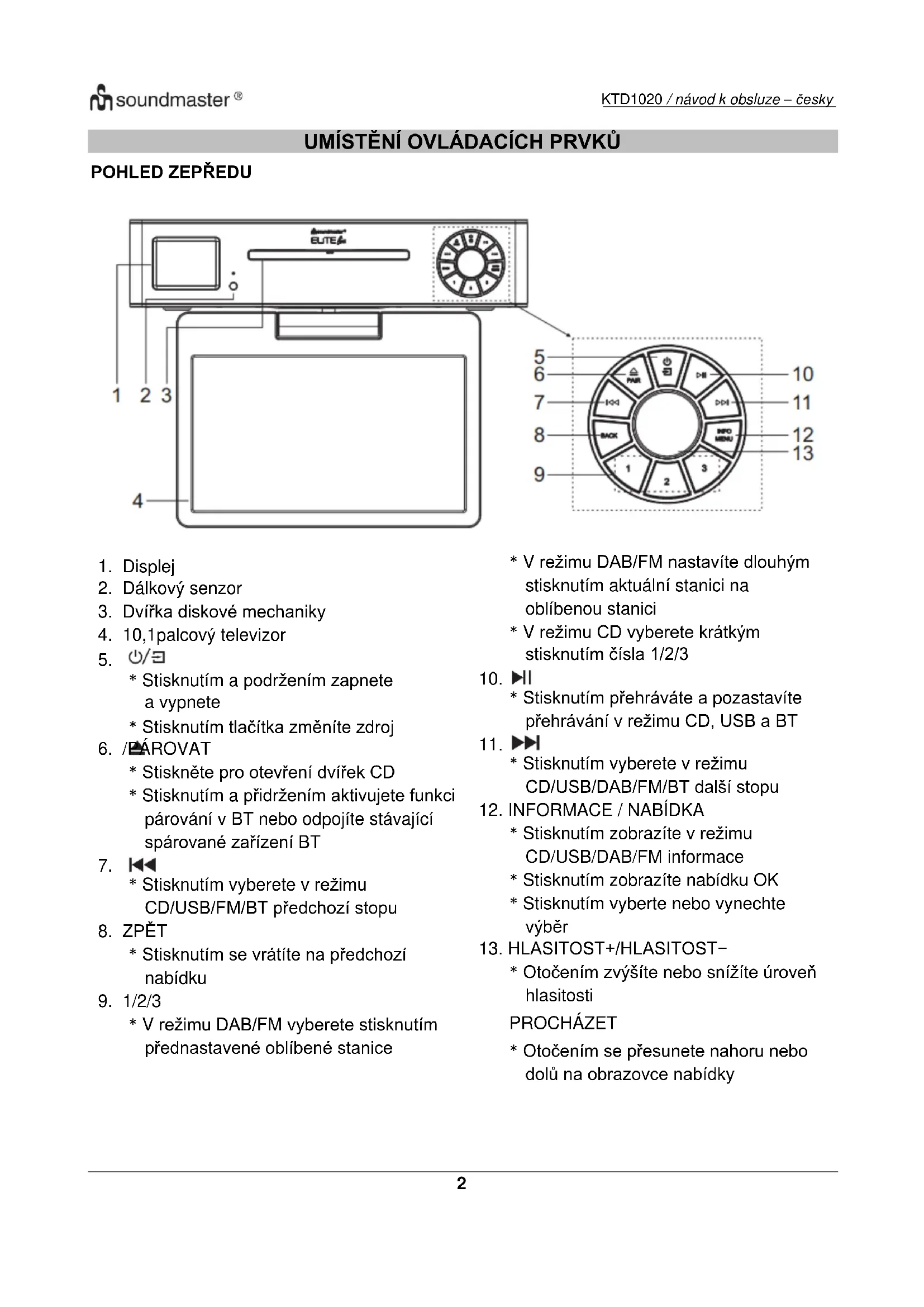 NÁVOD K OBSLUZE KTD1020 Soundmaster