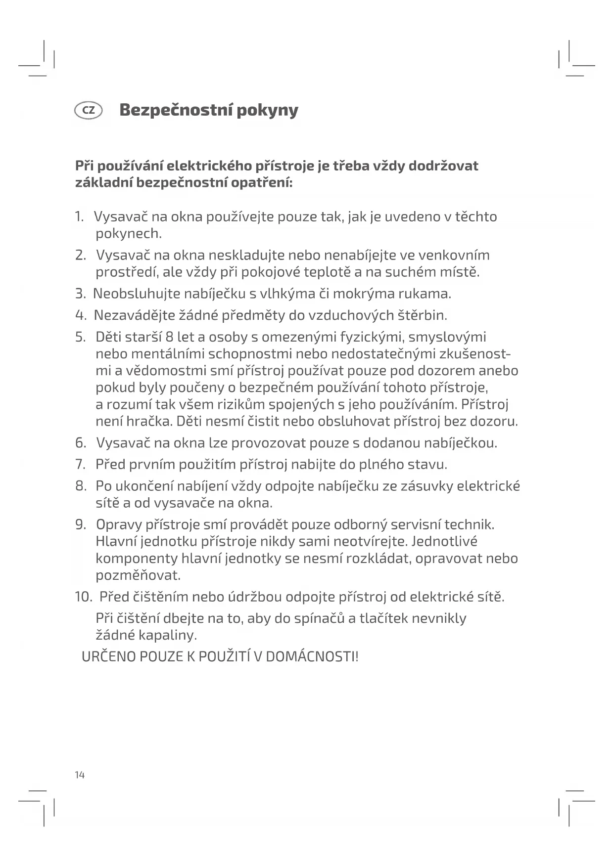 6. Vysavač na okna lze provozovat pouze s dodanou nabíječkou.