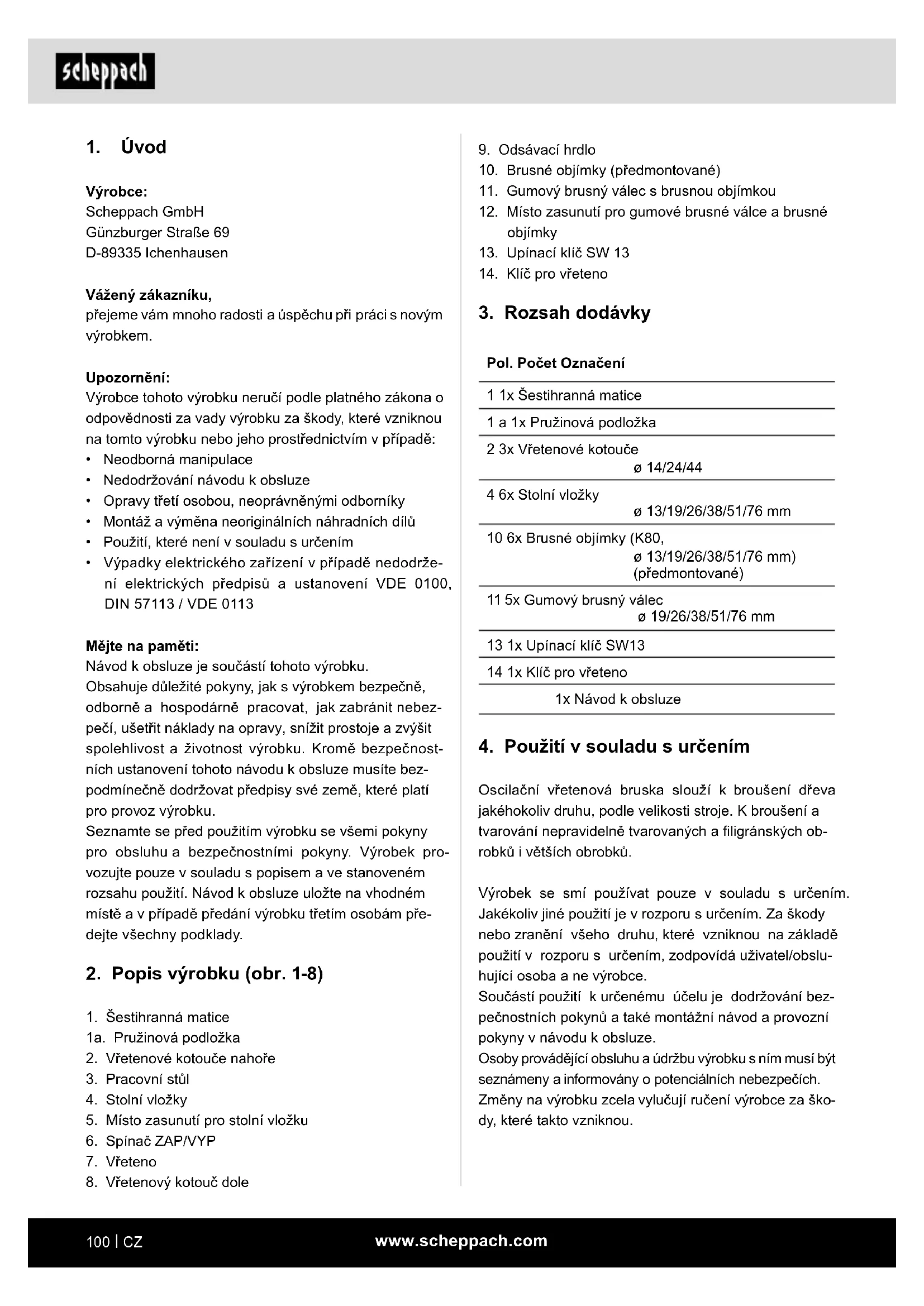 NÁVOD K OBSLUZE OSM100 SCHEPPACH