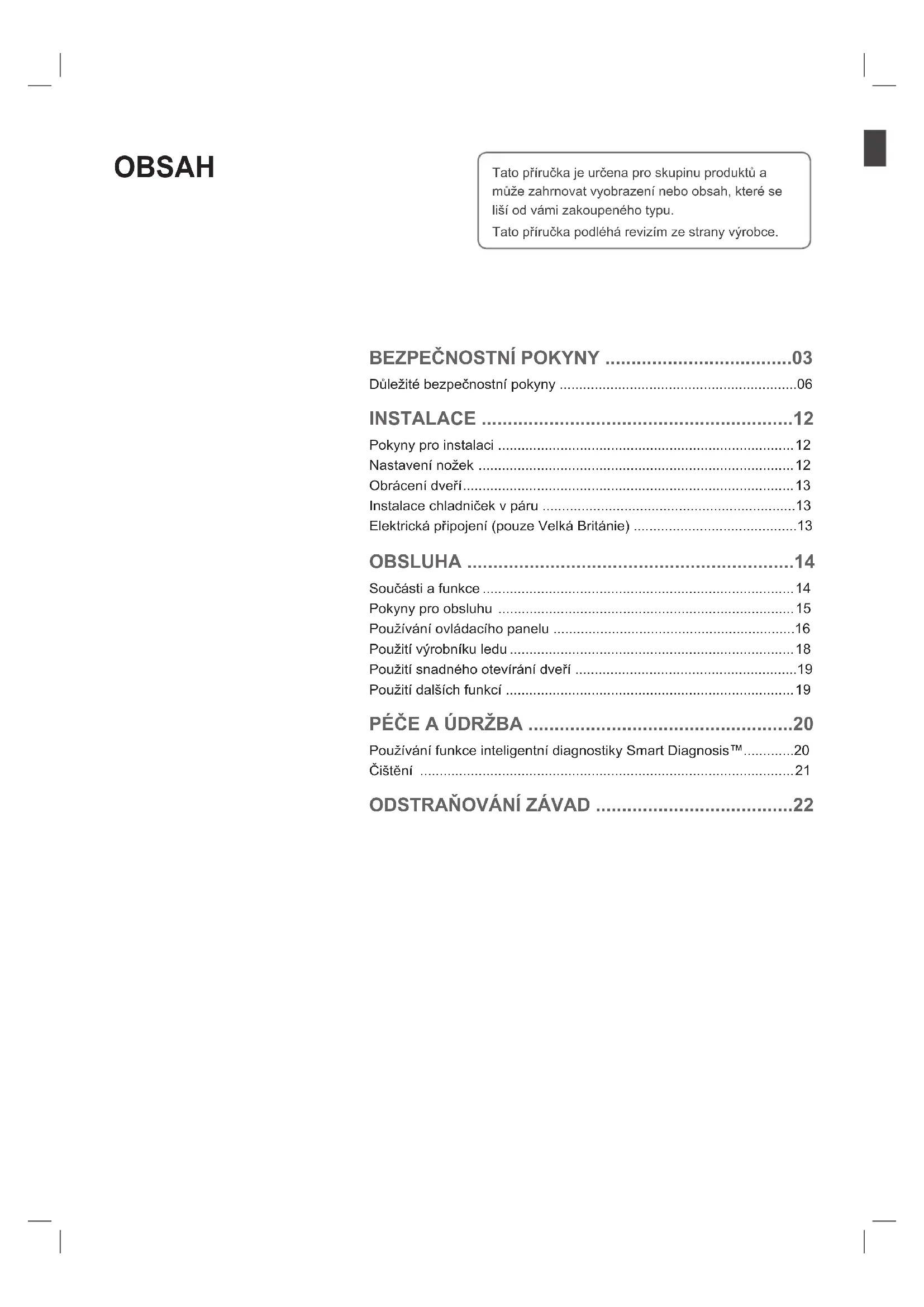 - MFL68864503_00 Obsah Tato příručka je určena pro skupinu produktů a může zahrnovat vyobrazení nebo obsah, které se liší od vámi zakoupeného typu. Tato příručka podléhá revizím ze strany výrobce. BezPečnostní Pokyny p. 3