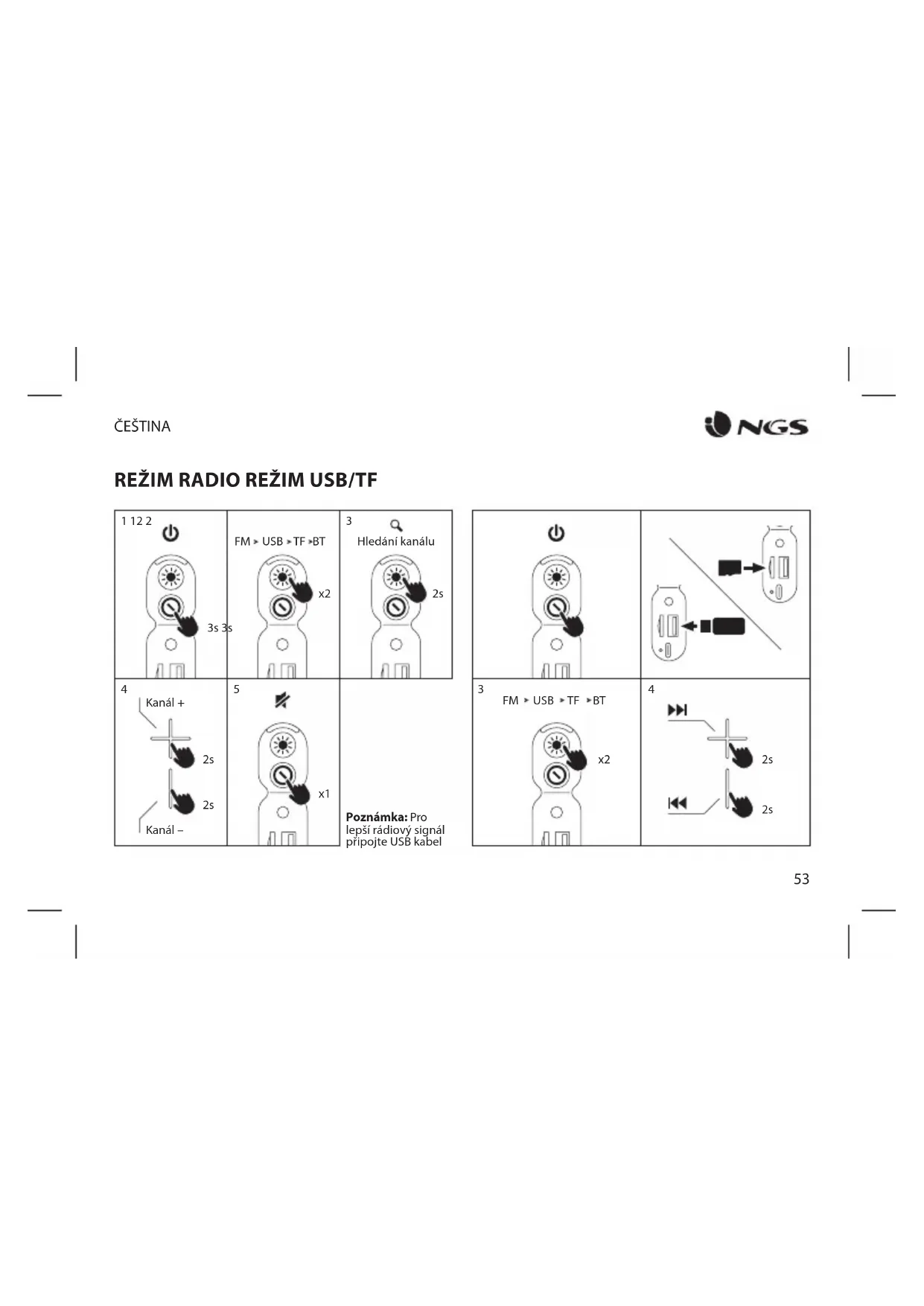 Poznámka: Pro lepší rádiový signál připojte USB kabelUŽIVATELSKÁ PŘÍRUČKA