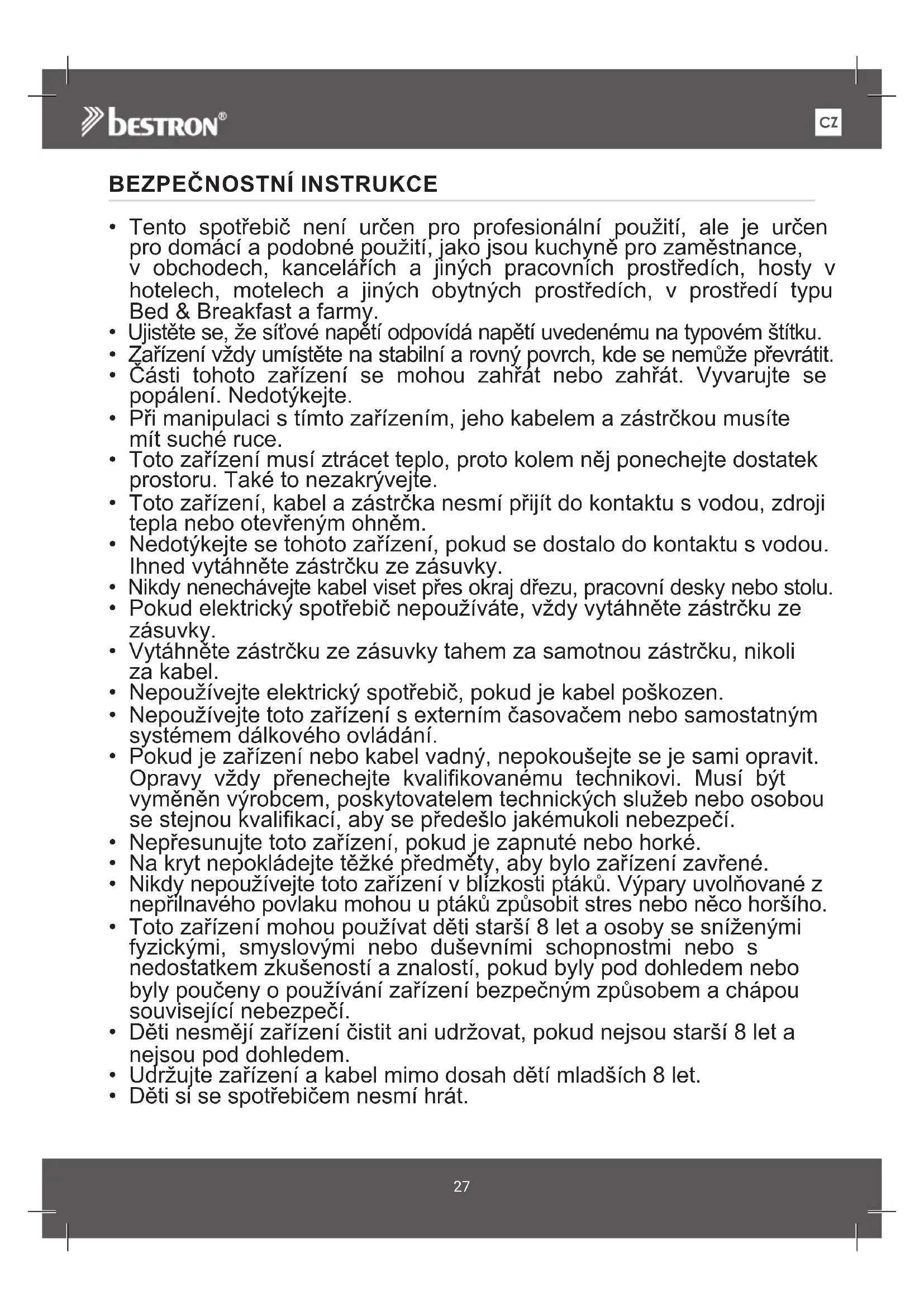 - Děti si se spotřebičem nesmí hrát.CZ