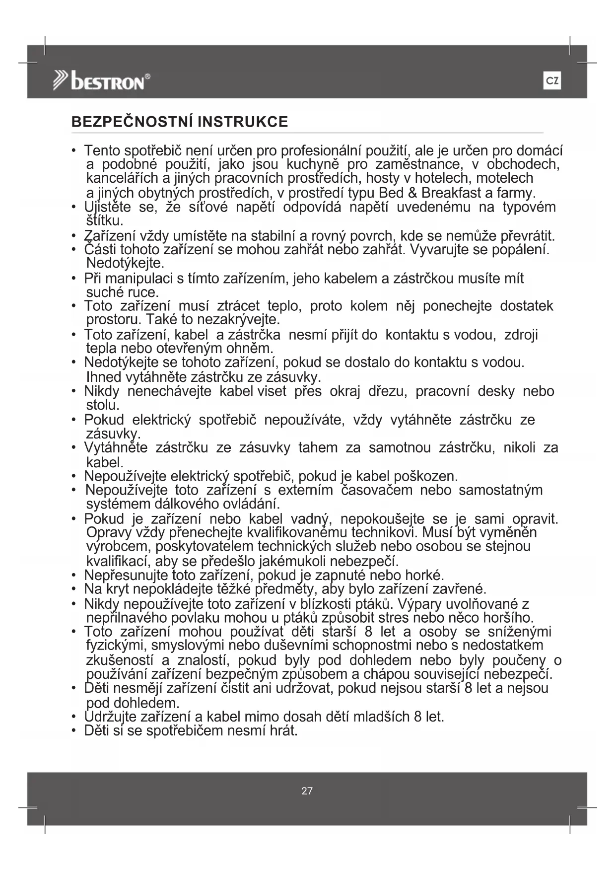 - Děti si se spotřebičem nesmí hrát.CZ