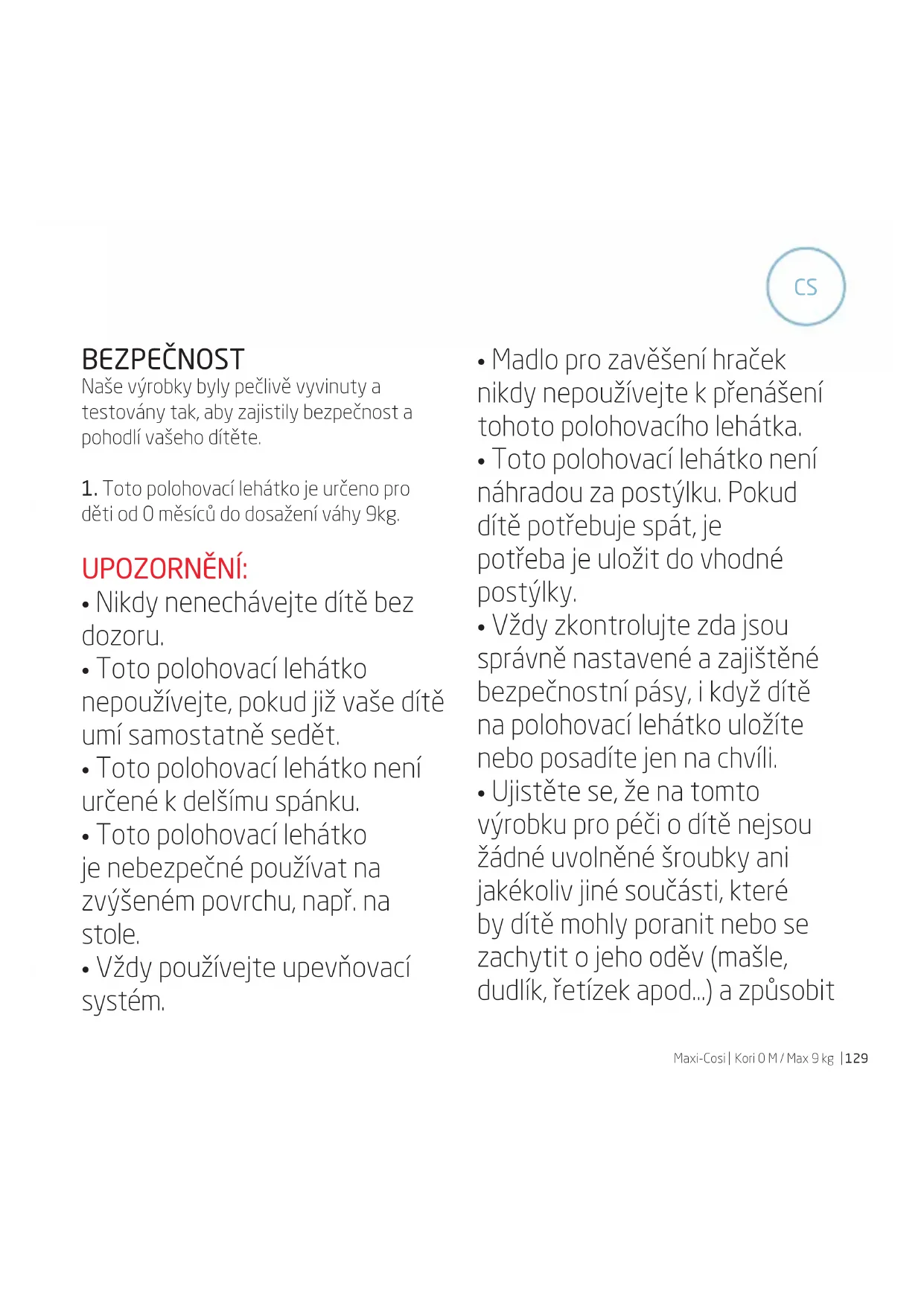 BEZPEČNOST Naše výrobky byly pečlivě vyvinuty a testovány tak, aby zajistily bezpečnost a pohodlí vašeho dítěte.