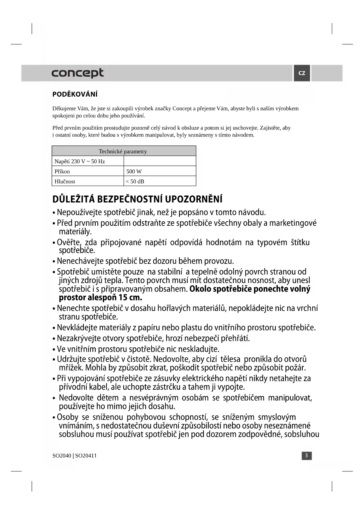 Dekujeme Vam, ze jste si zakoupili vyrobek značky Concept a prejeme Vam, abyste byli našim vyrobkem spokojeni po celou dobu jeho použivani.