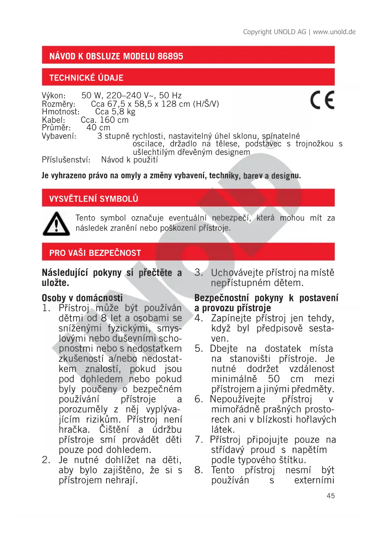 Kolonial 86895 - Ventilátor UNOLD - Bezplatný návod k obsluze