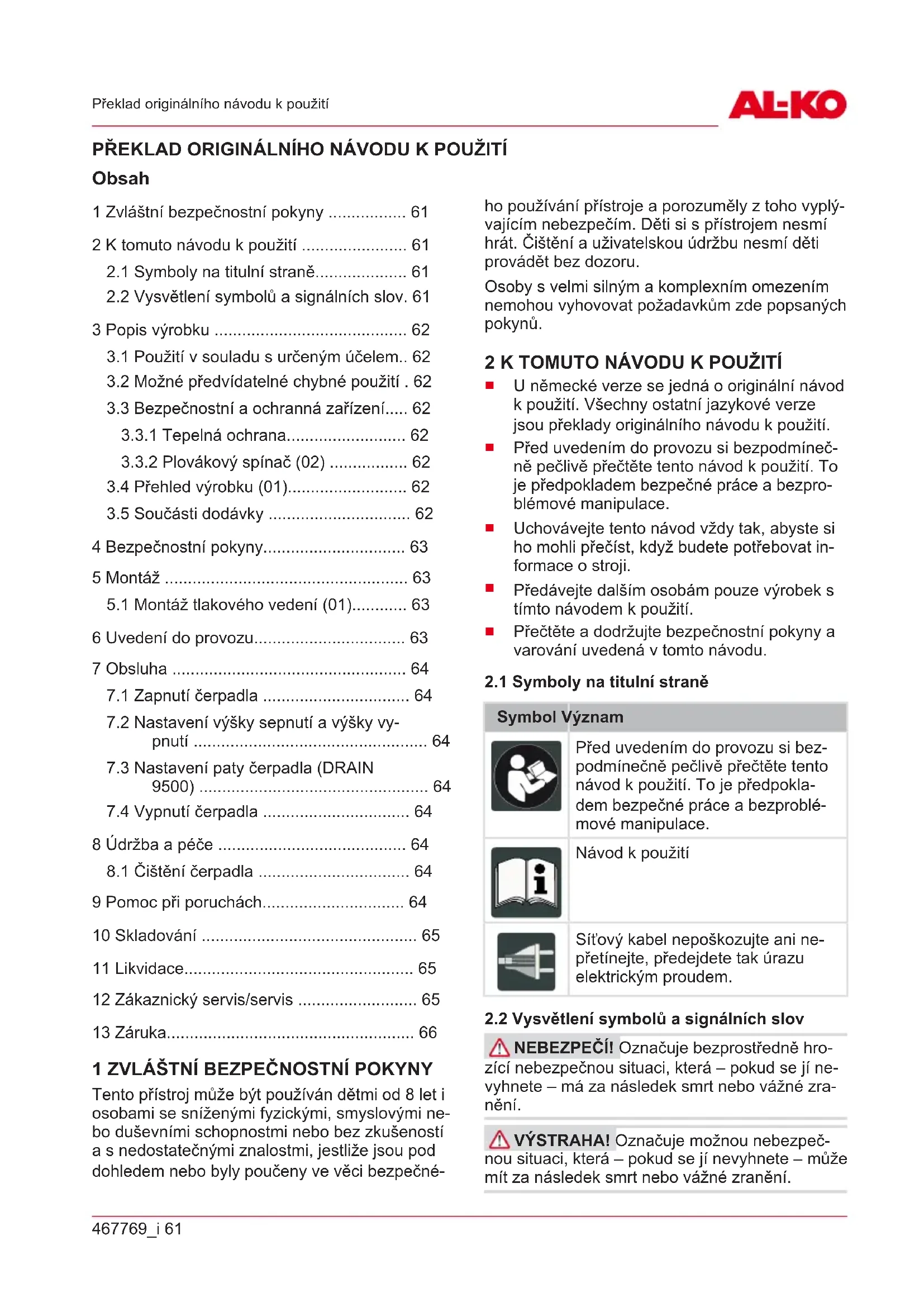 NÁVOD K OBSLUZE SUB 8500 Easy AL-KO