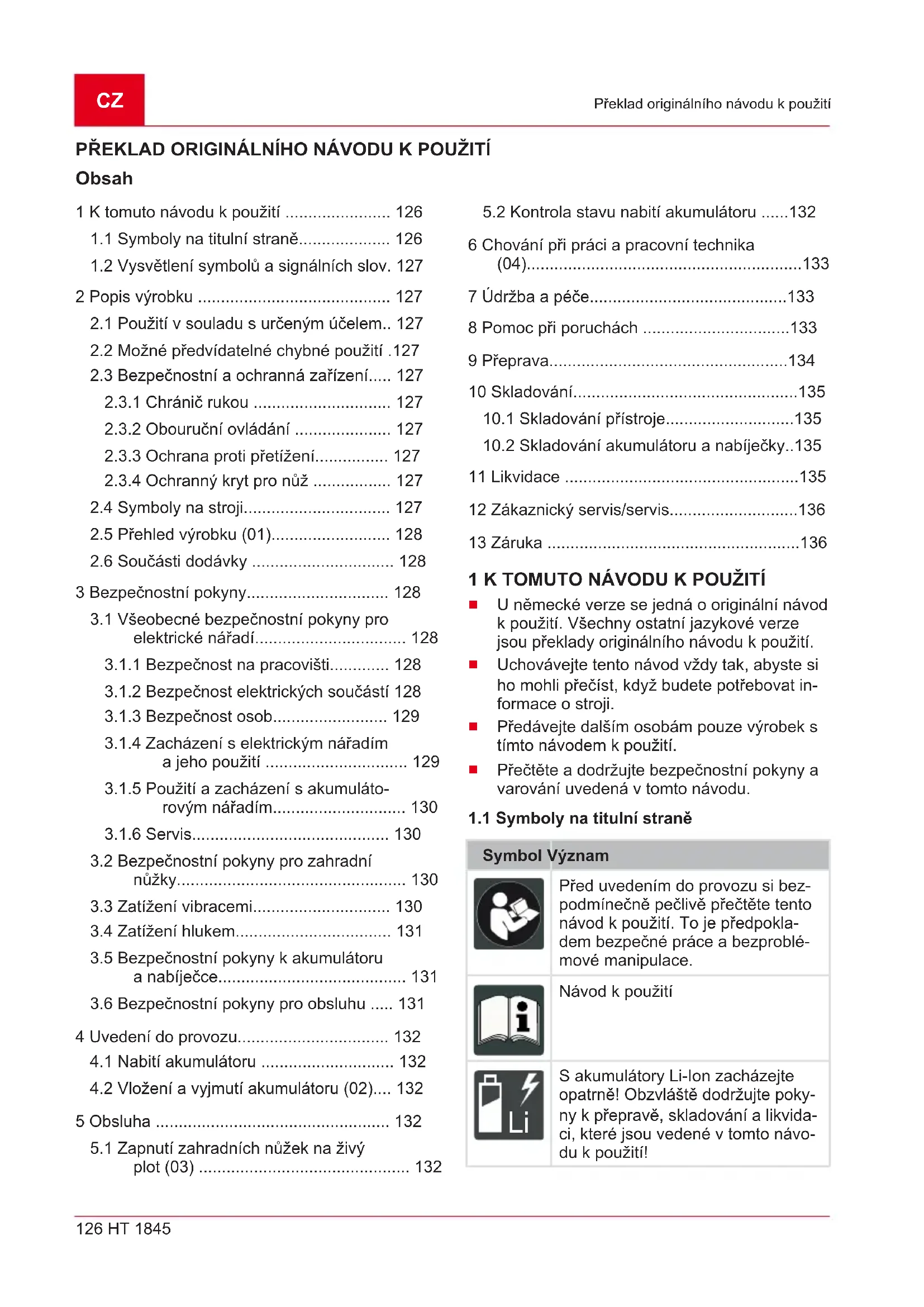 10.2 Skladování akumulátoru a nabíječky..135