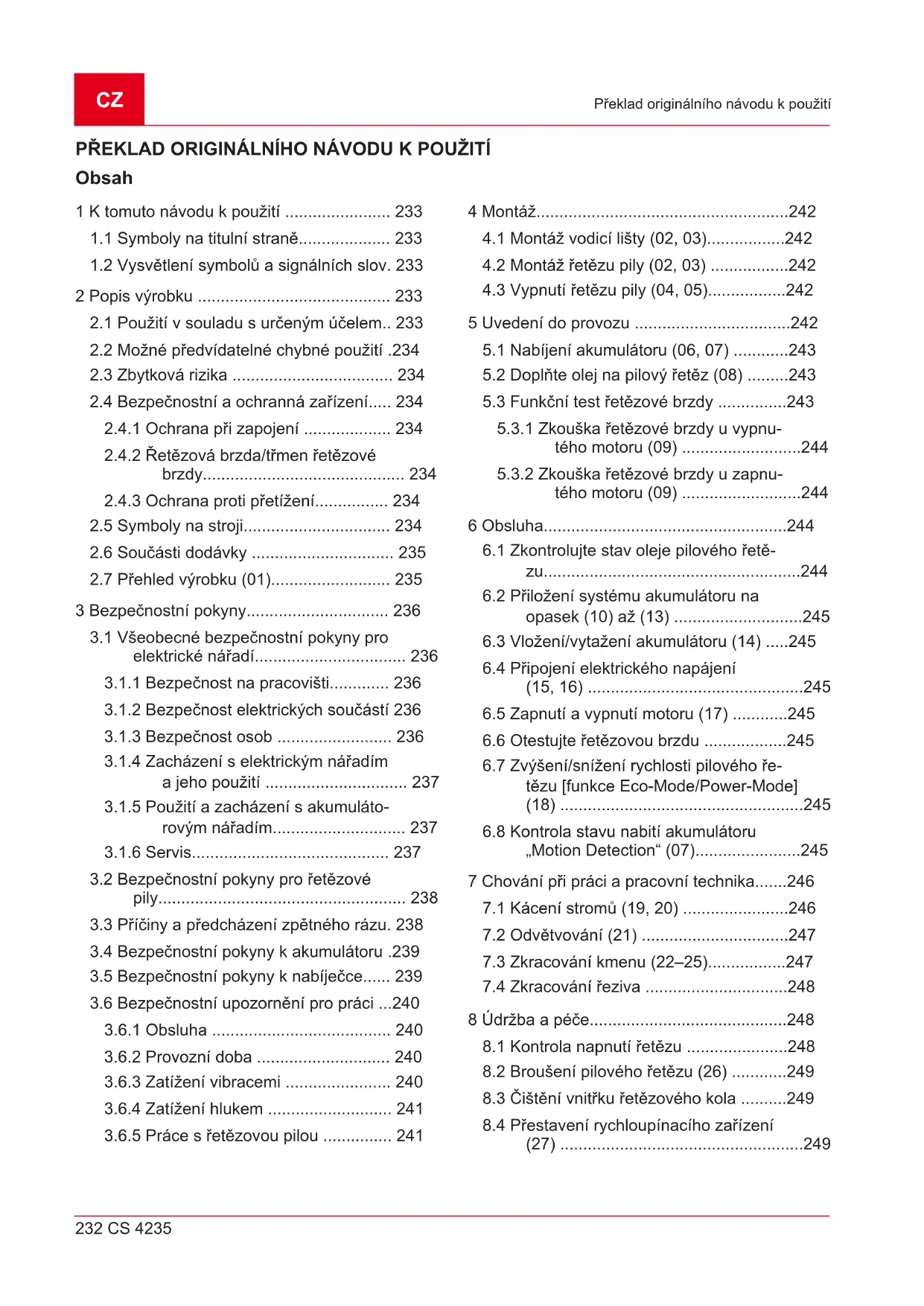 250 CS 4235 Údržba a péče