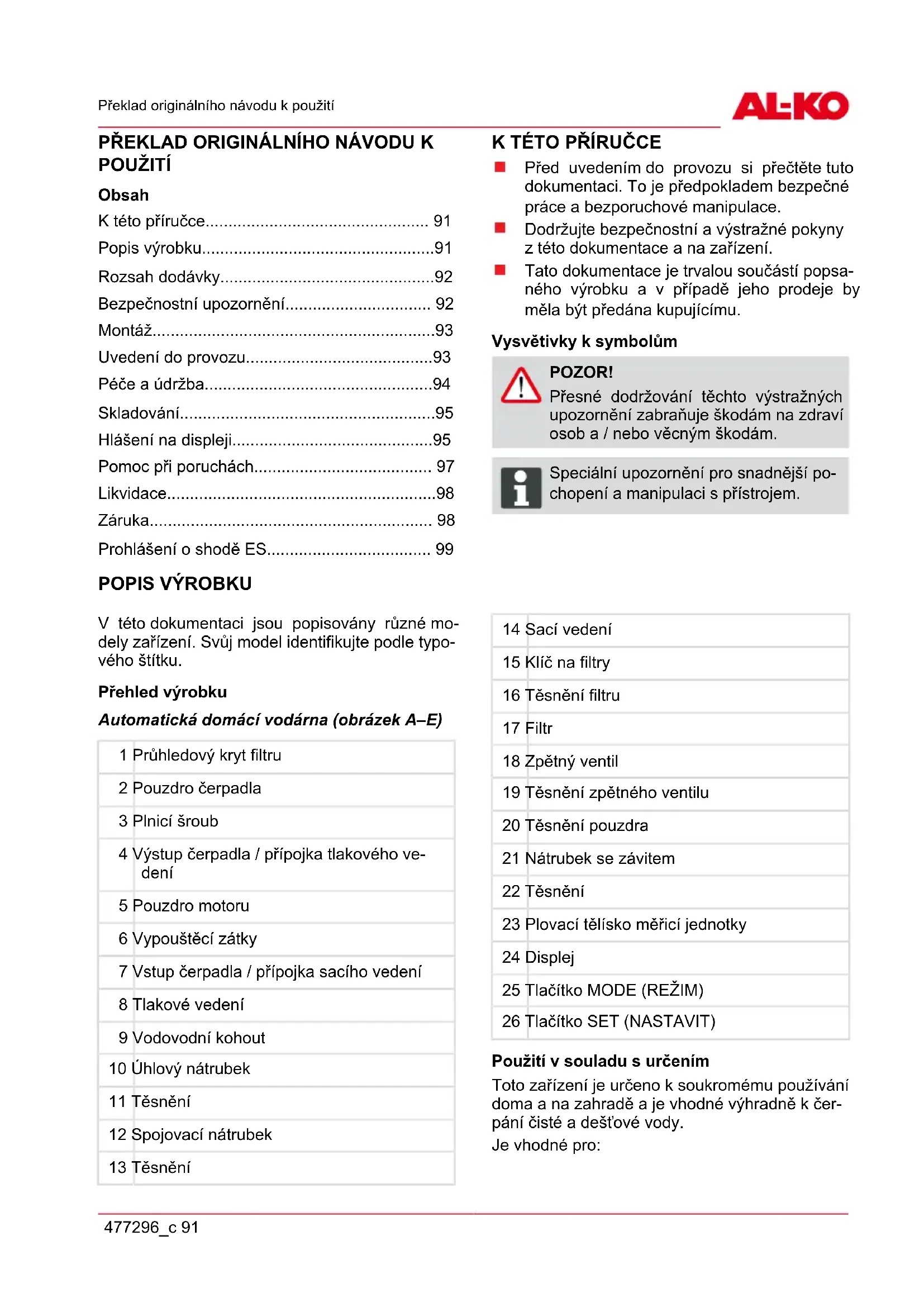 NÁVOD K OBSLUZE HWA 4500 Comfort AL-KO