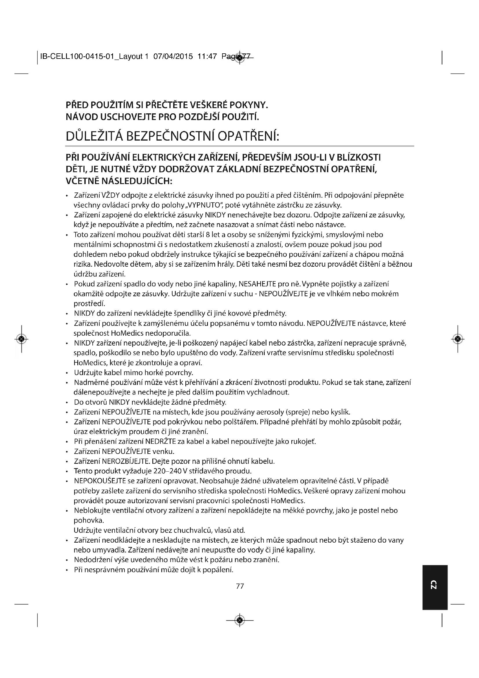 - Při nesprávném používání může dojít k popálení. IB-CELL100-0415-01_Layout 1 07/04/2015 11:47 Page 7778