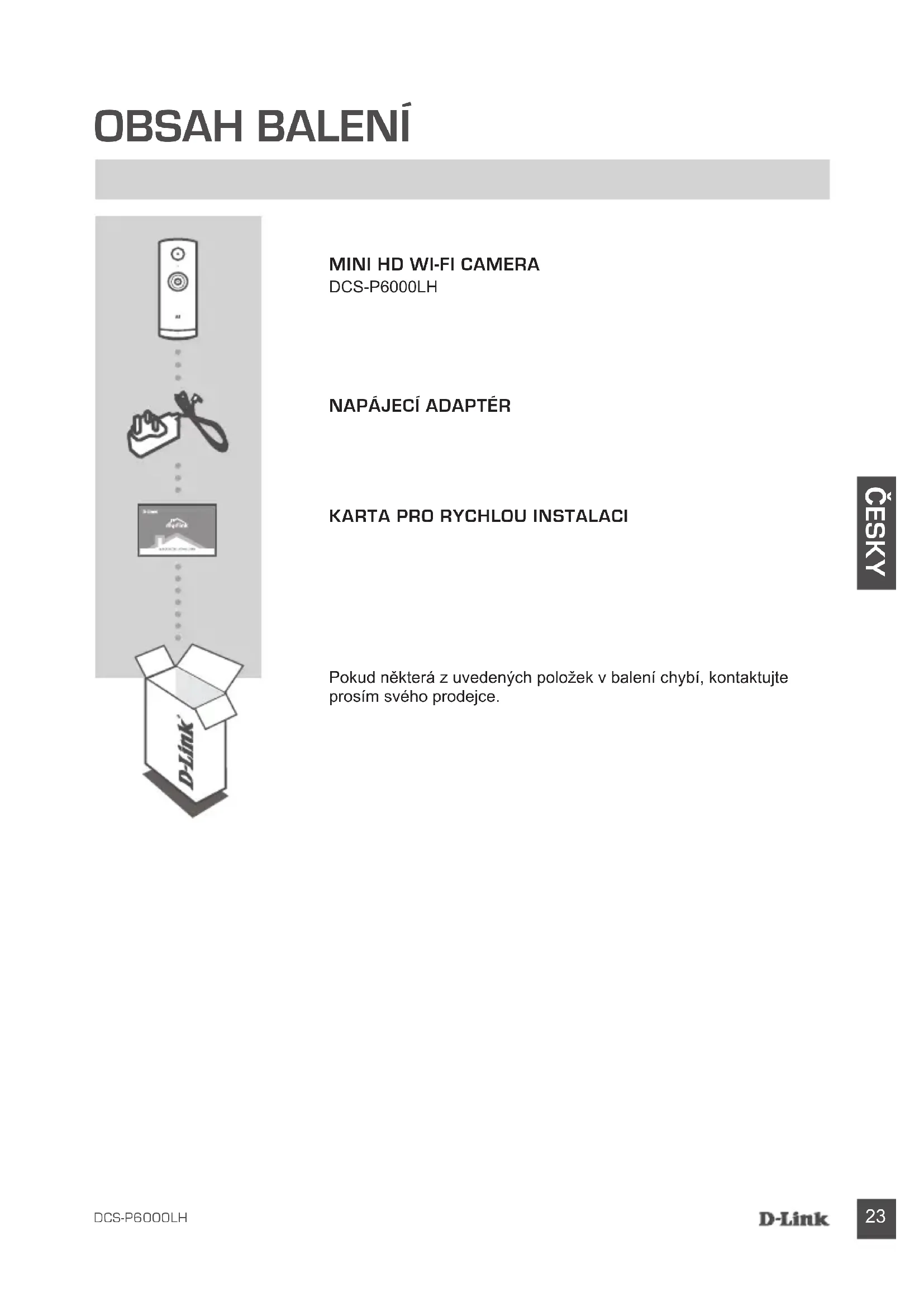 Pokud některá z uvedených položek v balení chybí, kontaktujte prosím svého prodejce.