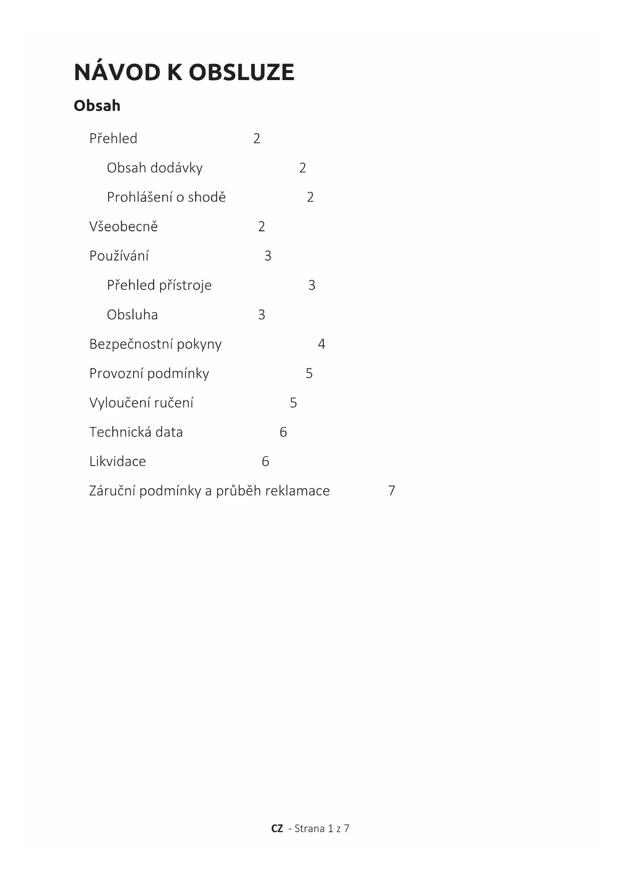 Prcte tse peiv te nto navod a respektujte vsechny Pokyny uvedené v toto nadvu, ay se zarucila dlouhodoba zivotnost a spolehlvie pouzivani pristroje. Uschovejte tento nadv no dosah ruky a odevzdejte jej jinym uizvatelum pristroje.